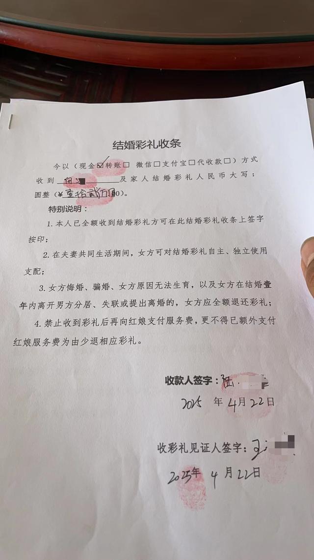 回忆起陆某随自己回老家的经历,何先生满是怒气。“路上都还好好的,刚到家门口便变了脸,临时要加三金和见面礼。”何先生说,当时家里的亲戚和村里的邻居也都在现场,考虑到已经花了那么多钱,不至于为了这万把块钱而闹僵。“我答应第二天去补买三金以及宴席上长辈会给红包当作见面礼,她才同意下车。”