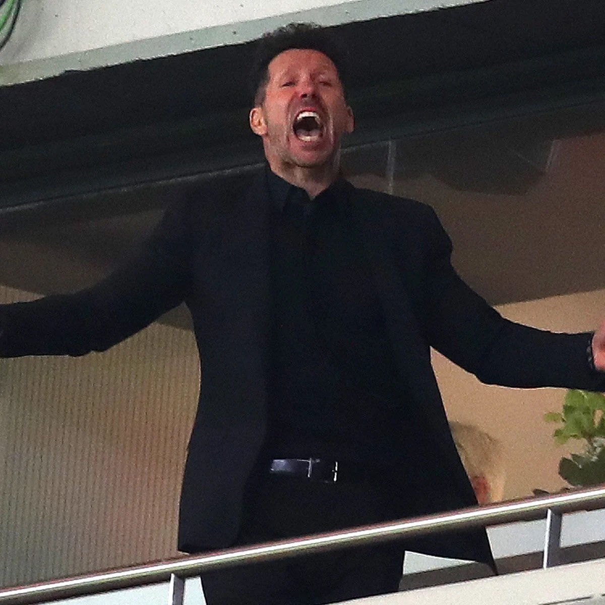 西蒙尼在第一回合比赛中被罚下场,但在第二回合比赛中,他在看台上指挥球队赢得了比赛。