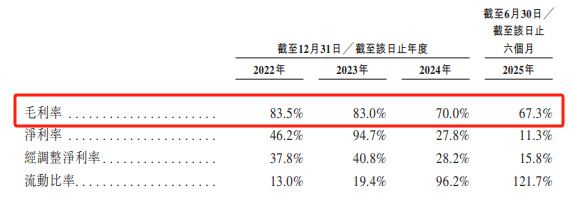 毛利率数据显示,擎天全税通于2022年、2023年、2024年及截至2025年6月30日止六个月的毛利分别为人民币9990.7万元、人民币1.34亿元、人民币1.20亿元及人民币4292.1万元,同期的毛利率分别为83.5%、83.0%、70.0%及67.3%,不断下滑,主要是由于系统集成成本增加,相应毛利率减少所致。