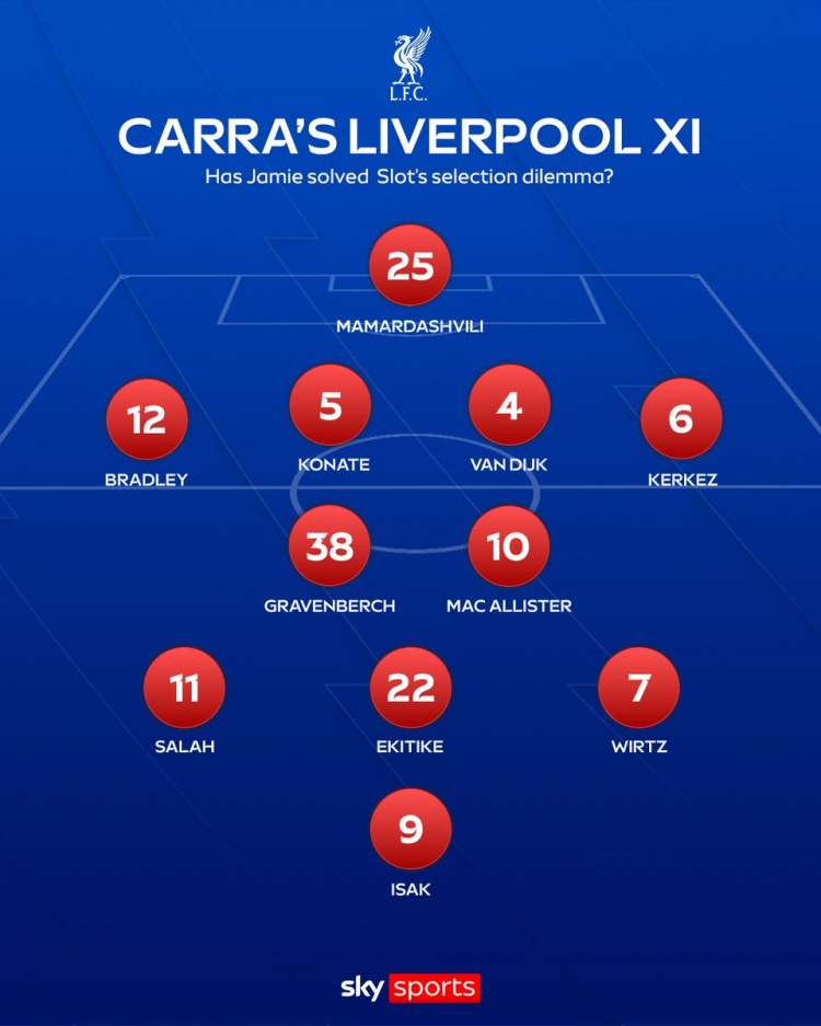 直播吧10月21日讯卡拉格在天空体育节目上排出了目前利物浦首发11人的最佳解决方案。