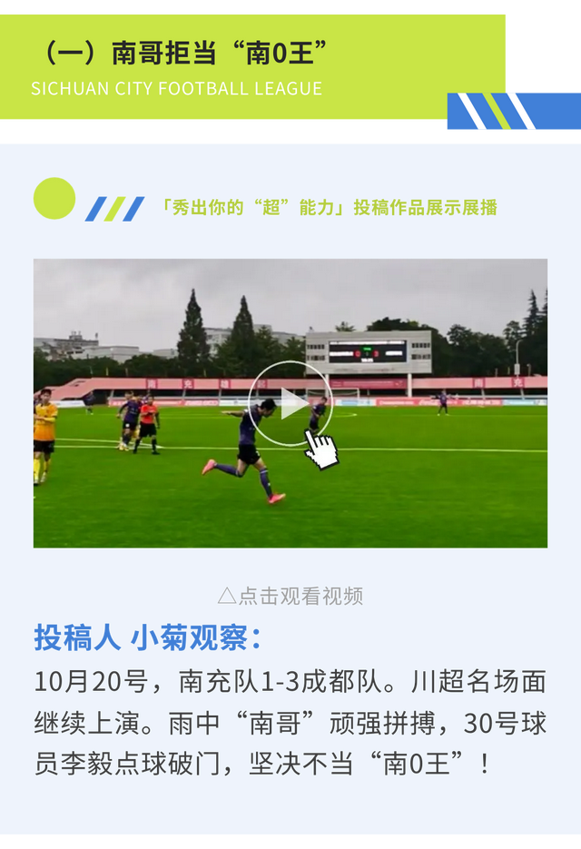 自2025/2026四川银行四川省城市足球联赛(简称“川超”)拉开战幕以来,我们面向广大球迷、球员发起的「看川超,秀出你的超能力」短视频图文征集活动收到了大量作品。一幅幅动人画面,一次次暖心互动,一个个可爱创意,共同交织出这场属于所有人的足球盛宴。