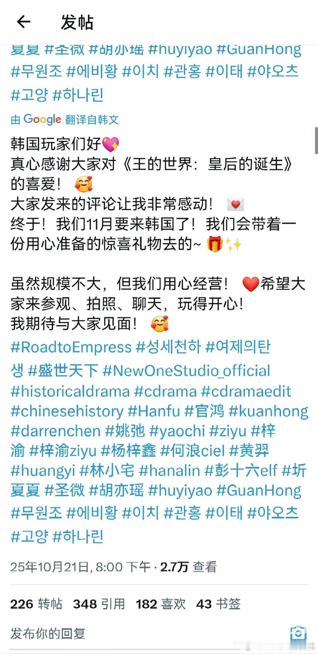 盛世天下主演要去🇰🇷开见面会了,也算小🔥了一把