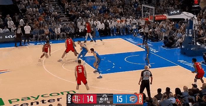 无差别单打!阿门如今强的离谱! 在今天NBA揭幕战火箭对阵雷霆的第一节比赛中,阿门借掩护过掉对手后迎着阿门抛投命中,并且还造成后者犯规打成2+1! 第一节比赛还没结束,阿门已经拿下10分2助攻,即便是卫冕冠军雷霆队,也拦不住阿门的冲击!这赛季的火箭实在是太让人期待了!