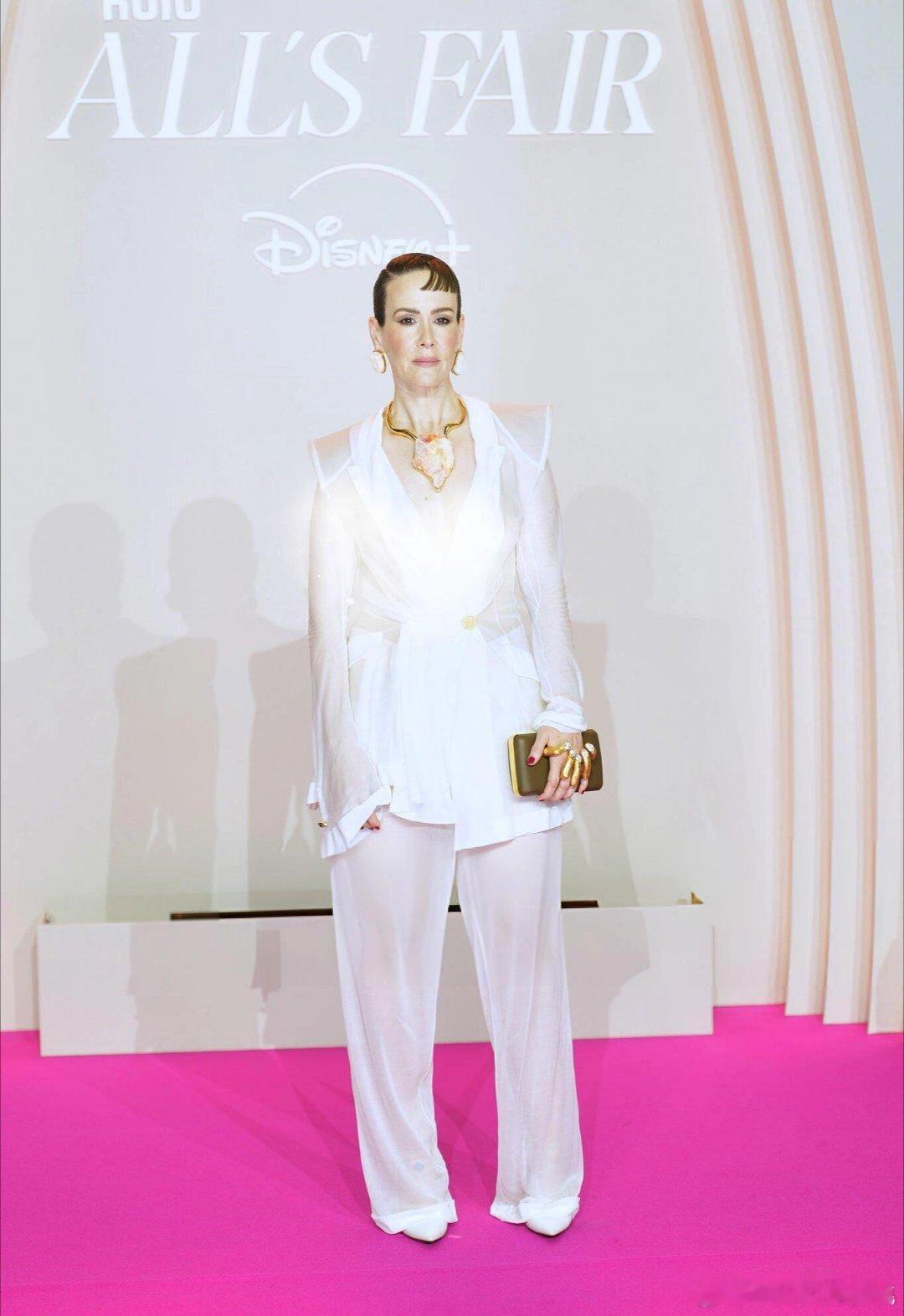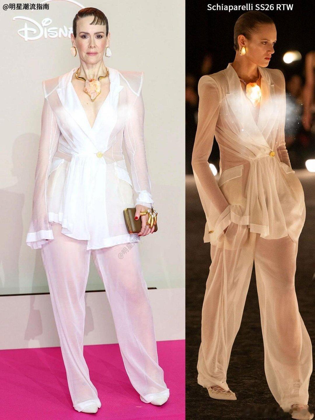 香蕉姐一身Schiaparelli Spring 2026 系列白色礼服搭配五指手拿包亮相电影《All's Fair》首映式! 宋丹丹发型👀