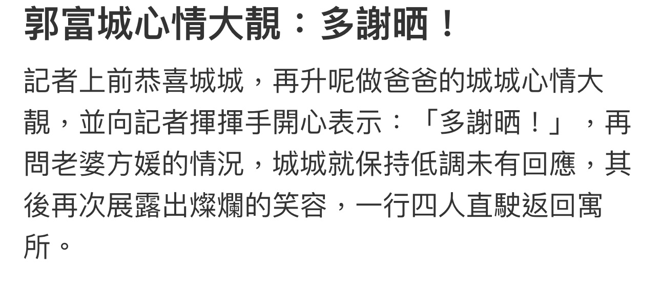 郭富城和方媛的三胎宝宝今天出生了!郭富城亲自驾车和父母一起接三宝出院。还挥手感谢