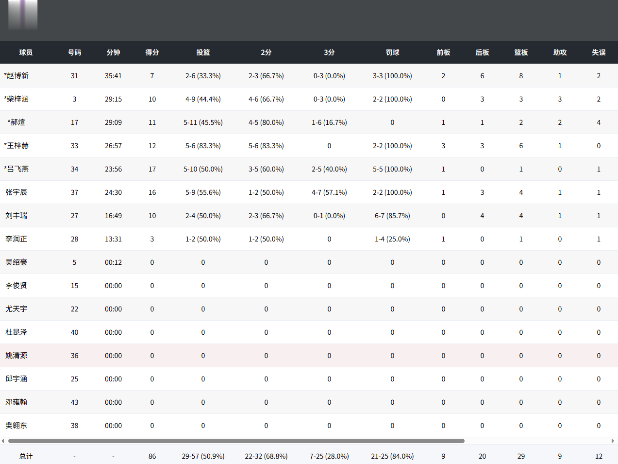 双方部分球员数据如下: