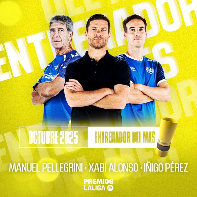西甲10月最佳主帅候选:阿隆索、佩莱格里尼、佩雷斯