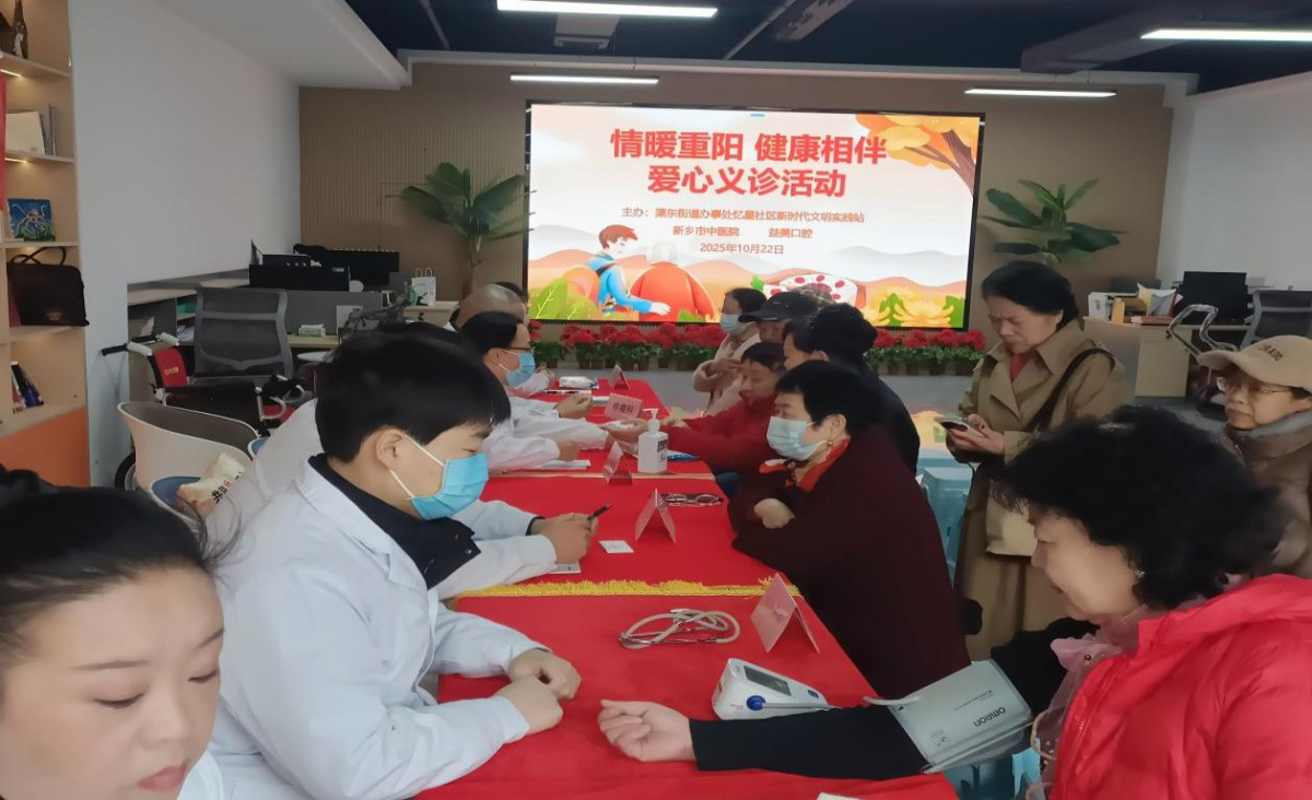 在重阳节即将到来之际,为切实守护辖区老年人健康、提高居民健康意识,10月22日上午,新乡红旗区渠东街道忆星社区新时代文明实践站联合新乡市中医院、益美口腔共同开展“情暖重阳健康相伴”爱心义诊活动,为社区居民提供免费的医疗咨询和健康检查、科普卫生知识,让爱心服务触手可及,健康关怀零距离。