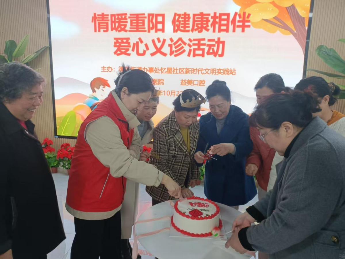 义诊结束后,社区工作人员端上了精心定制的重阳节主题蛋糕。蛋糕上装饰着寓意健康长寿的吉祥图案,承载着社区对长者们的深深祝福。大家围坐一堂,品尝着香甜的蛋糕,分享着健康生活的趣事,现场欢声笑语不断,气氛融洽而温暖,洋溢着浓厚的节日温情。