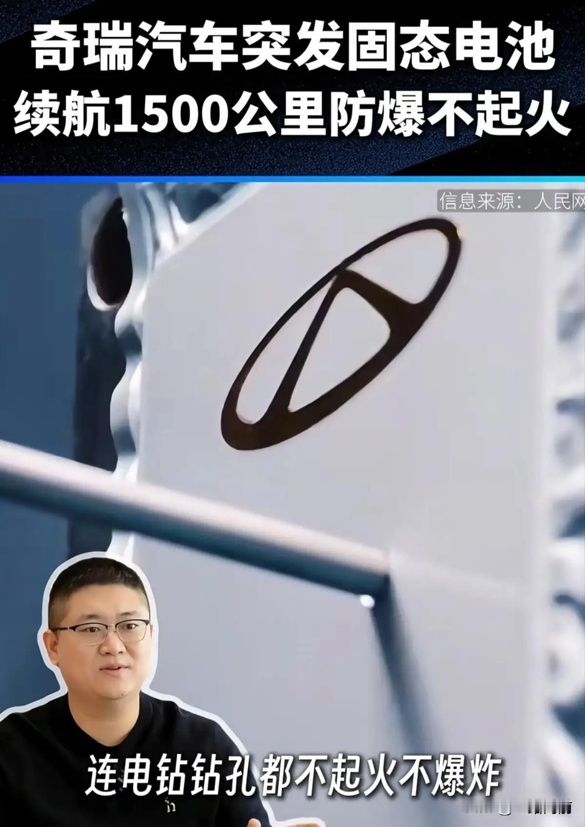 今年的奇瑞全球创新大会,让我大饱眼福,尹同跃这个理工男造车确实有一手,奇瑞汽车突发固态电池续航1500公里防爆不起火 之前总听比亚迪、宁德时代说固态电池多牛,但要么卡在成本上,要么卡在量产难题上,曾毓群都直言三五年内难上车。结果奇瑞悄咪咪搞出的“犀牛S”电池,电芯能量密度干到600Wh/kg,远期续航直接瞄准1500公里,这数据比现在主流锂电池翻了快两倍。 更绝的是安全性能!传统锂电怕穿刺、怕挤压,一点火星就可能出意外,但奇瑞这电池敢当众搞针刺测试,被电钻钻了都不冒烟不起火,切个角还能正常供电。核心秘密就在那个“原位聚合固态电解质”,把易燃的液态电解液全换成了无机材料,从根上解决了起火问题。北方车主更该笑了,这电池在-30℃低温下续航都不带腰斩的,冬天开暖风终于不用肉疼了。 说实话,之前总觉得奇瑞在新能源赛道不算最起眼的,但这次是真的秀出了肌肉。不过咱也得客观看,这电池要2027年才批量上市,现在的成本和实际装车体验还得等验证。但不管咋说,奇瑞这步棋算是把行业节奏带起来了。 你们说,等奇瑞固态电池上车了,比亚迪和宁德时代会加速跟进吗?2027年的电动车市场,是不是要变天了?