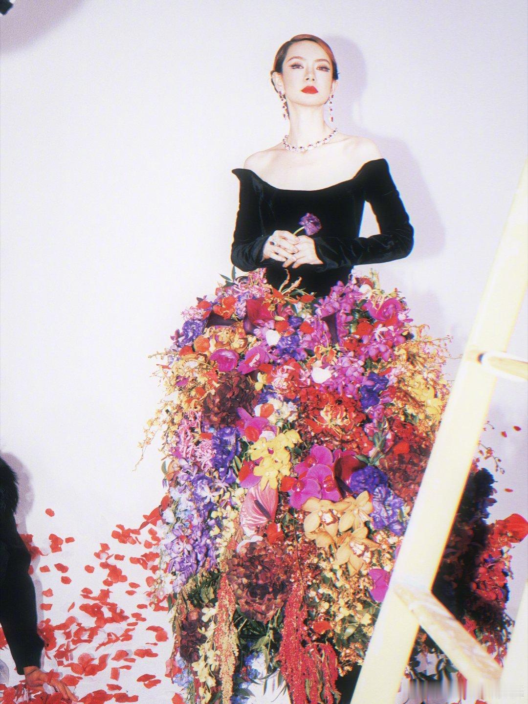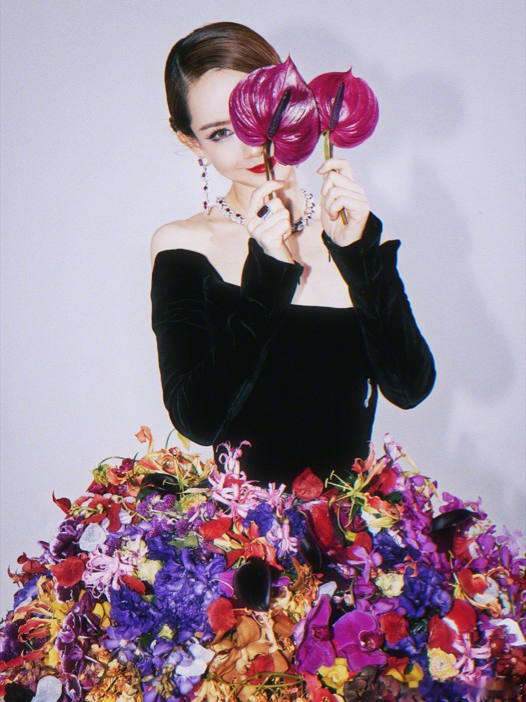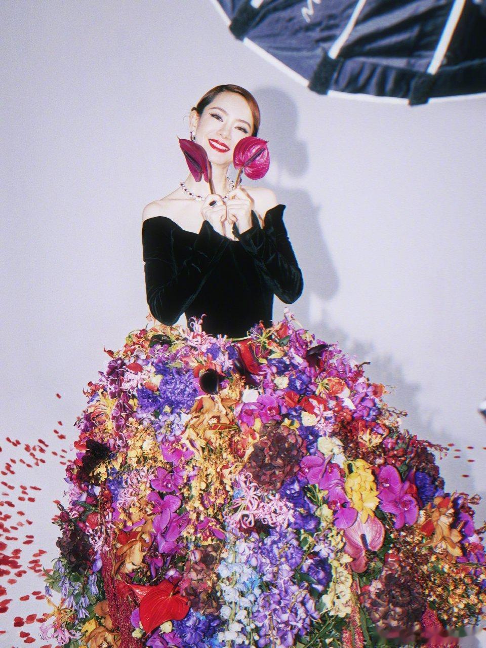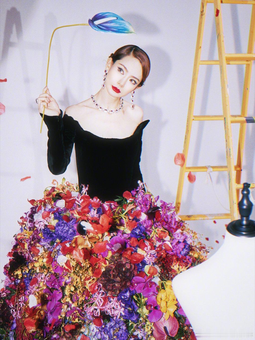 VOGUE盛典出发花絮戚薇率先出图,毫不意外是花团锦簇礼服,发型配合丝绒上半身有