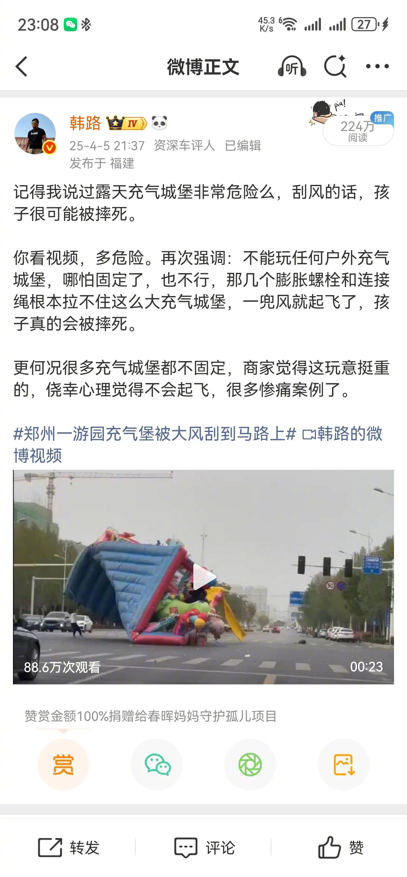 图1又有户外充气城堡被刮飞伤人事件。我之前反复发帖说过很多次了,再强调三次: