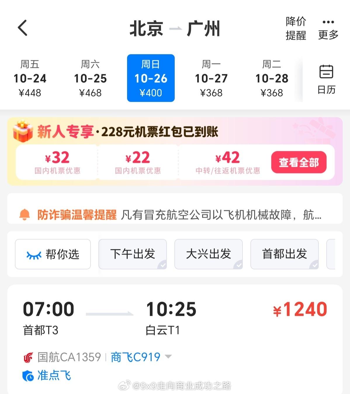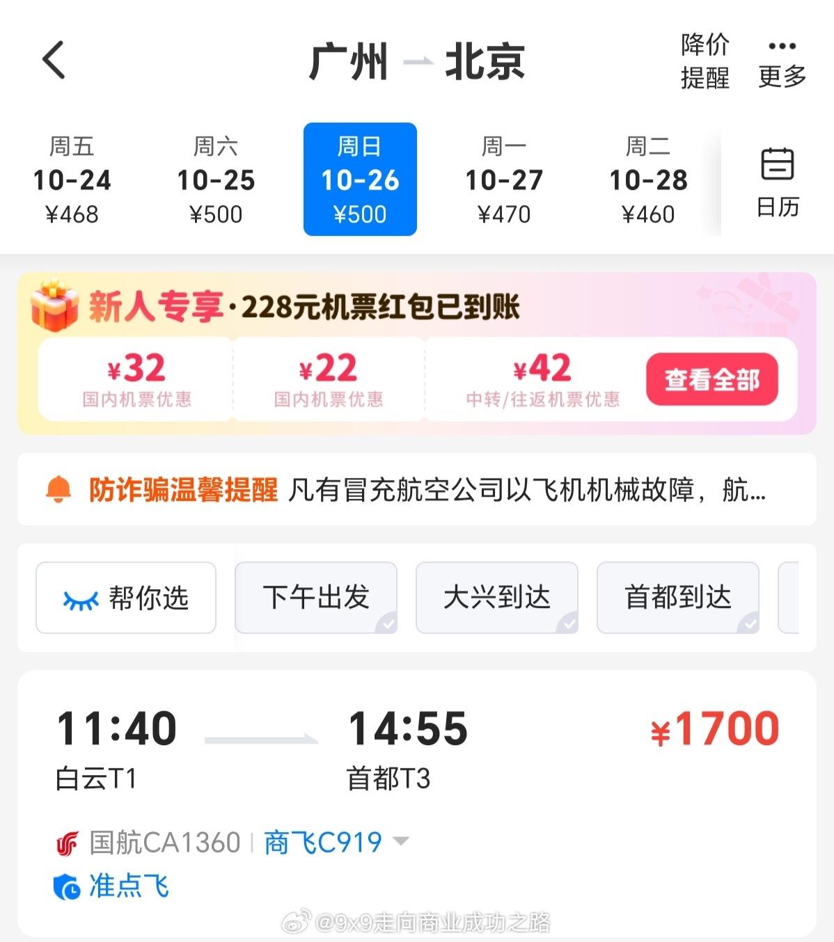 C919两千公里航段来了,10月26日起,国航C919机队开飞北京首都=广州白云航线! C919终于开这种比较远的航线了!像这种2000公里的航线,非常的适合一天分两个班次也就够了! 或者再套飞一个短途的,比如北京飞上海航线或者北京飞西安航线,现阶段就是要提高C919的利用率,这样才能挣到钱,否则飞得太少对于航空公司来说不合算。 各位是怎么看的?欢迎评论区留言。