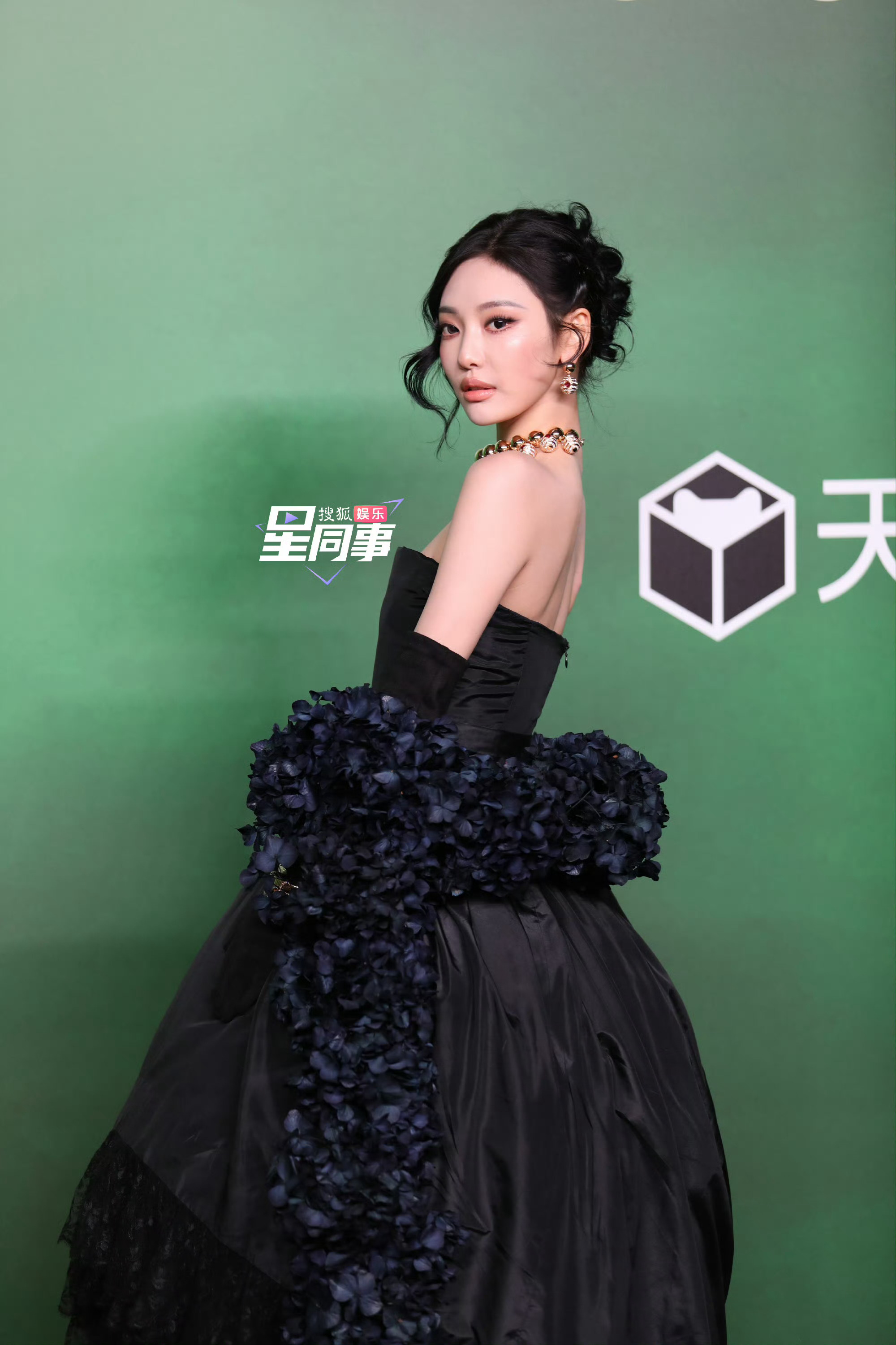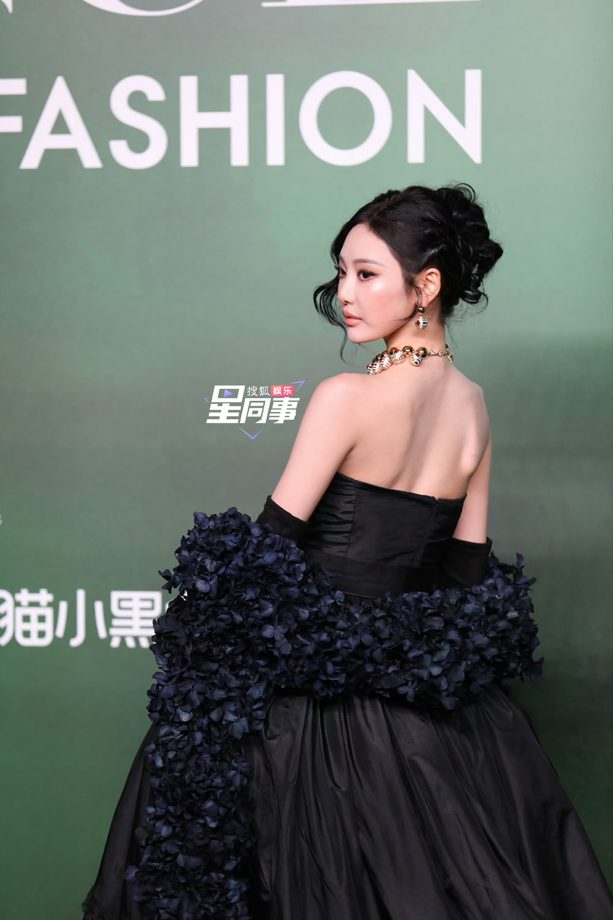 今日寿星Ningning化身黑天鹅出席VOGUE盛典,大秀美背,妆发好评!