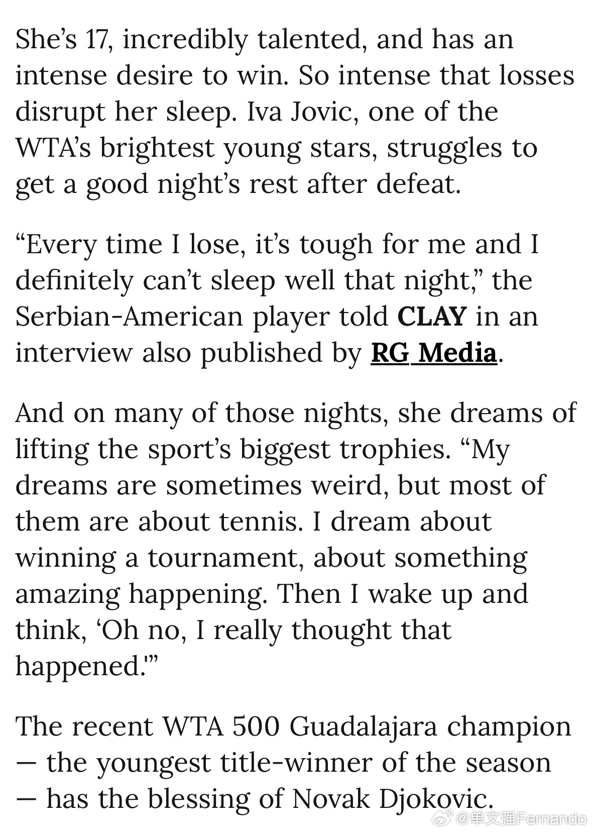 一次很全面的Iva专访内容,来自CLAY TENNIS,资深记者Sasa Ozmo采访撰文