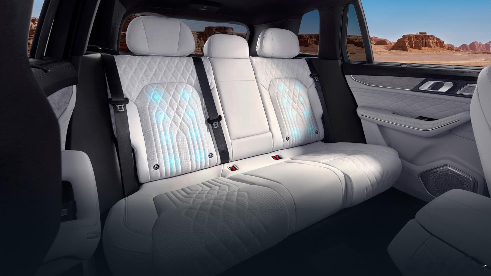 二排还有很多30W级车没有的座椅通风和座椅按摩,尤其这个菱形缝线我还是挺喜欢的。