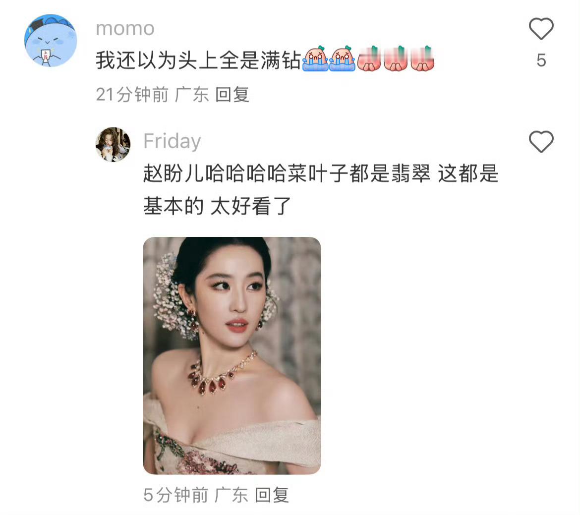 刘亦菲压轴前有赵盼儿的菜叶子被认成翡翠簪子再有黄亦玫的卷发器被认成花环现有刘亦菲