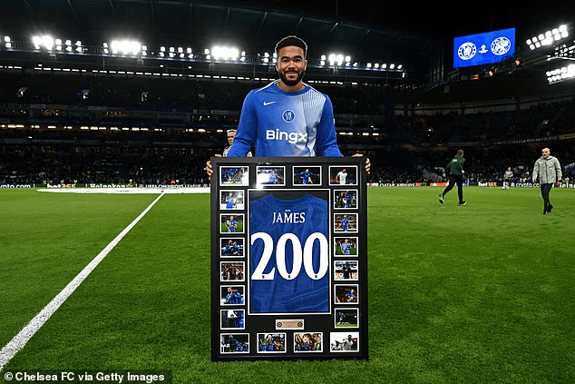 在此之前,体育总监保罗-温斯坦利和人才引援总监乔-希尔兹为里斯-詹姆斯颁发了一块奖牌,以庆祝他代表自己的青训俱乐部出场超过200场——这位青训毕业生如今已是球队的双百球员。