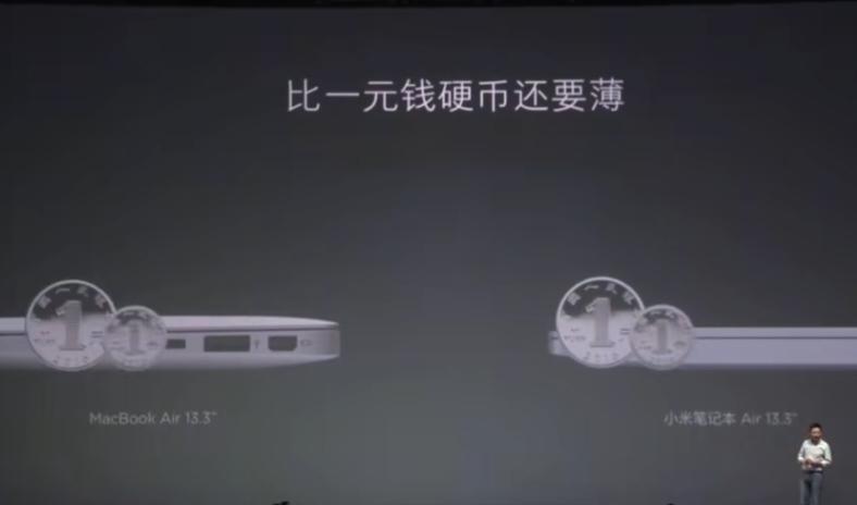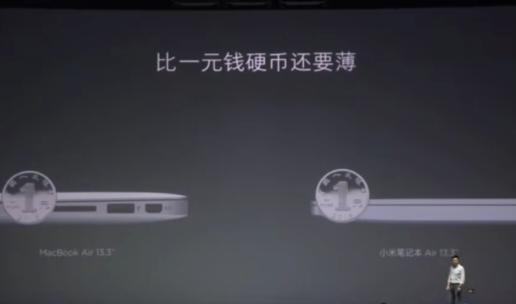 雷军那的聪明全部都放在营销上了。 说什么小米笔记本电脑比硬币要薄,谁知道他来了个