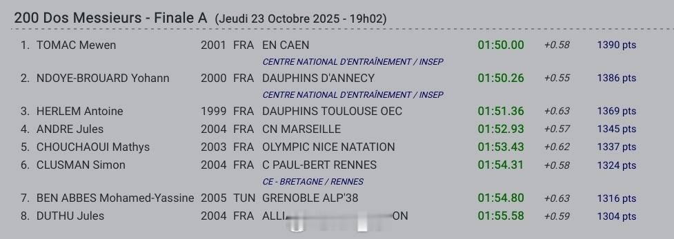 男200仰:Mewen Tomac 1:50.00