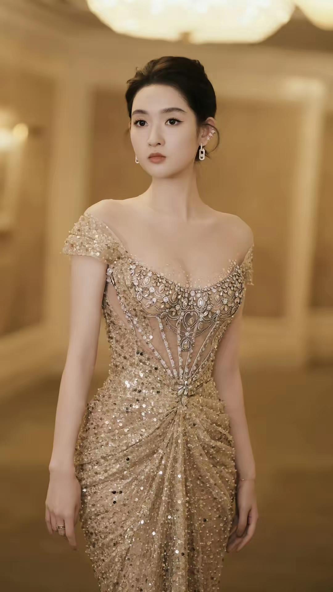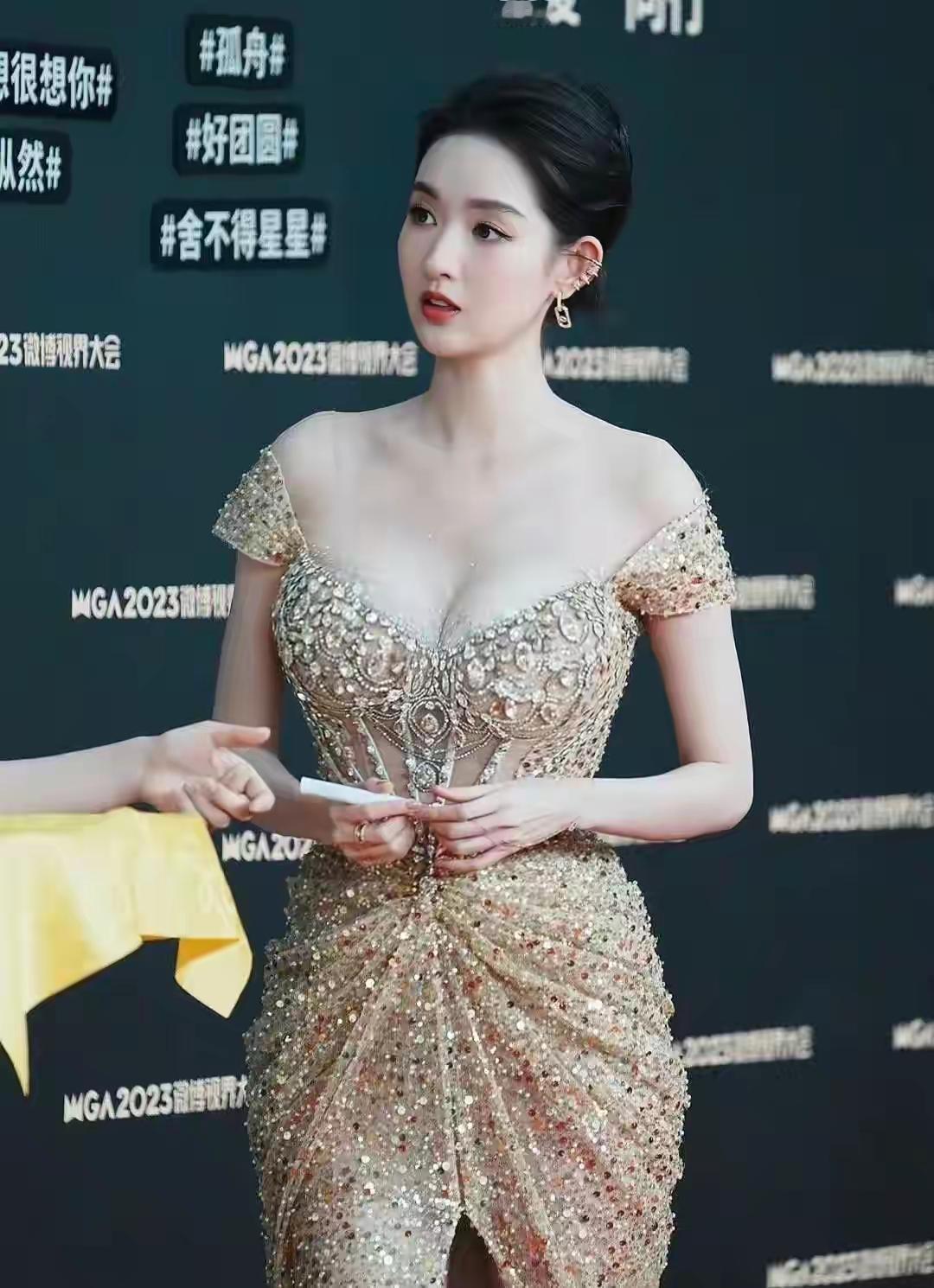 王玉雯湖北妹子,有东北女子的爽朗性格,红毯造型尽显优雅气质。