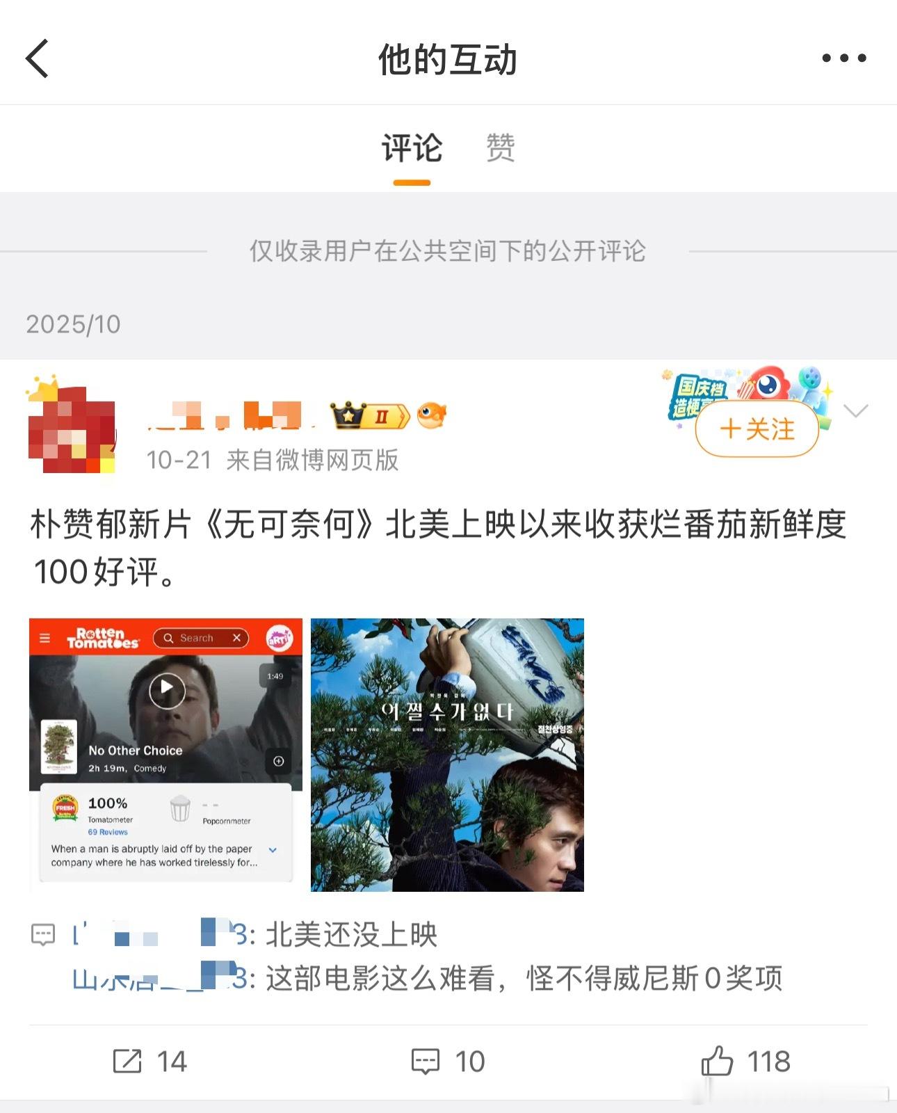 我是真搞不懂为啥一个人会对个电影有这么大的恶意,追着每一个评论去说难看,还看的是