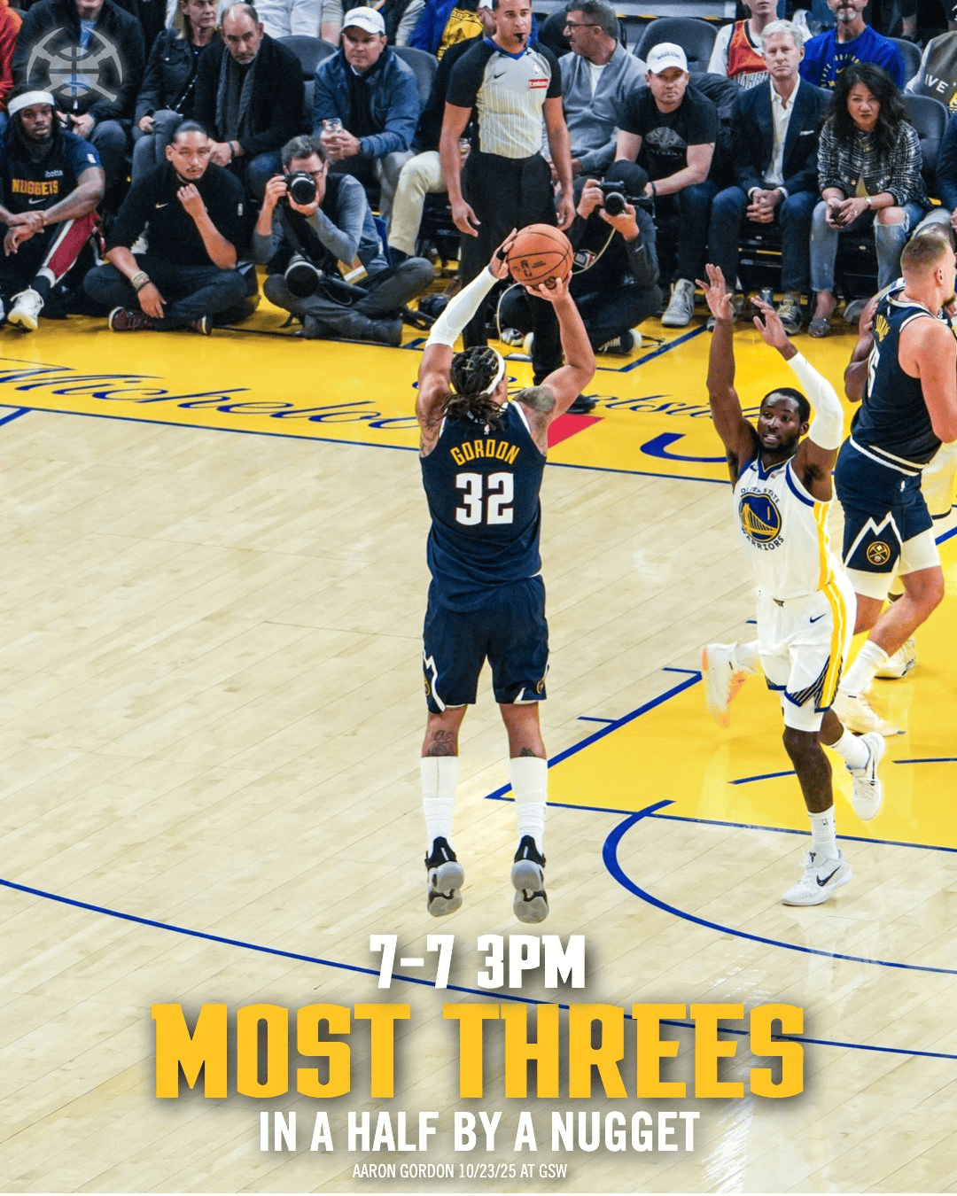 阿龙-戈登半场7记三分,超越默里刷新掘金半场三分新纪录