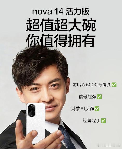 华为nova14活力版开售 nova 14 活力版于上午10:08正式开售啦,看了看配置和价格,前后双五千万超清影像➕AI通话防诈、AI魔法移图、鸿蒙智慧通信,在两千元这个档位确实是挺香的,而且还有日日新大额红包可以领,听说有玄学,整点领数额更大,能领多少全看各位手气了!双十一就买这个超值手机,另一个鸿蒙日日新红包,直接回血一半这才是抢红包的正确打开方式