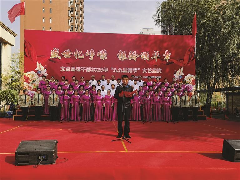本报讯在第十三个“老年节”重阳节来临之际,文水县老干部服务中心以“盛世忆峥嵘银龄颂华章”为主题,举办2025年老干部“九九重阳节”文艺展演活动,县委副书记武冬祯出席活动并致辞,众多老干部参与演出,现场氛围热烈。