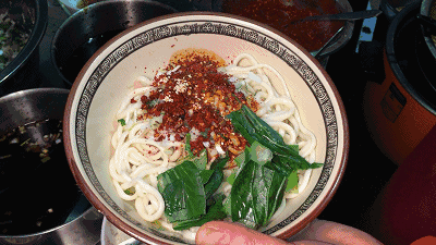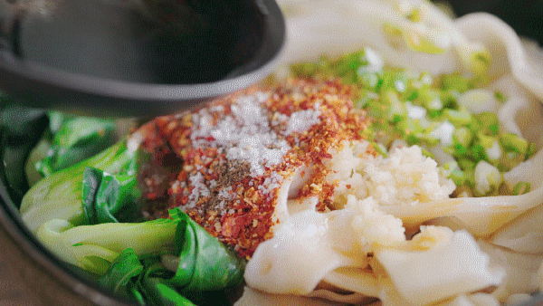 炼菜籽之油,至二百沸;火舌吐金瀑,声作“滋啦”,魂梦皆昂。初泼则椒熟香爆,再泼则醋起酸扬。红云腾碗面,赤霞绕鼻梁。斯油也,挟周仓胆气,带关公雄芒;一泼震九州,再泼荡四海!此泼油一瞬之惊雷,是味觉之典礼,更是生命之狂欢!