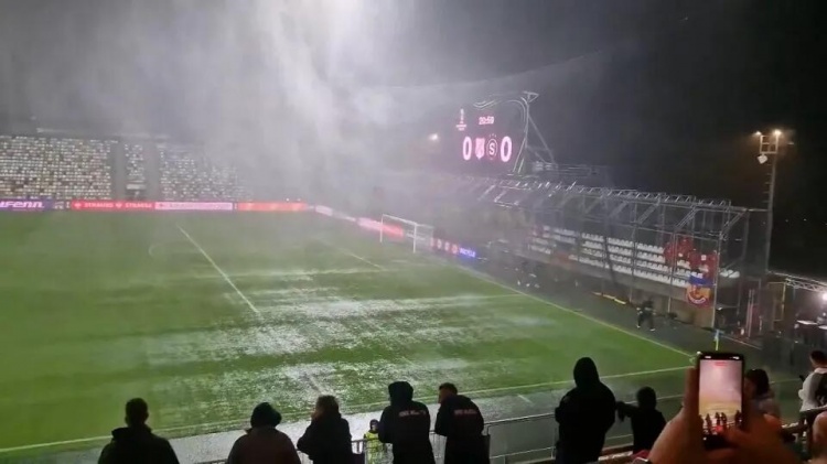 直播吧10月24日讯太阳报消息,在昨晚的一场欧协联比赛中,克罗地亚球队里耶卡主场迎战捷克球队布拉格斯巴达,但比赛仅进行了12分钟就因为暴雨和场所严重积水问题,不得不中断。