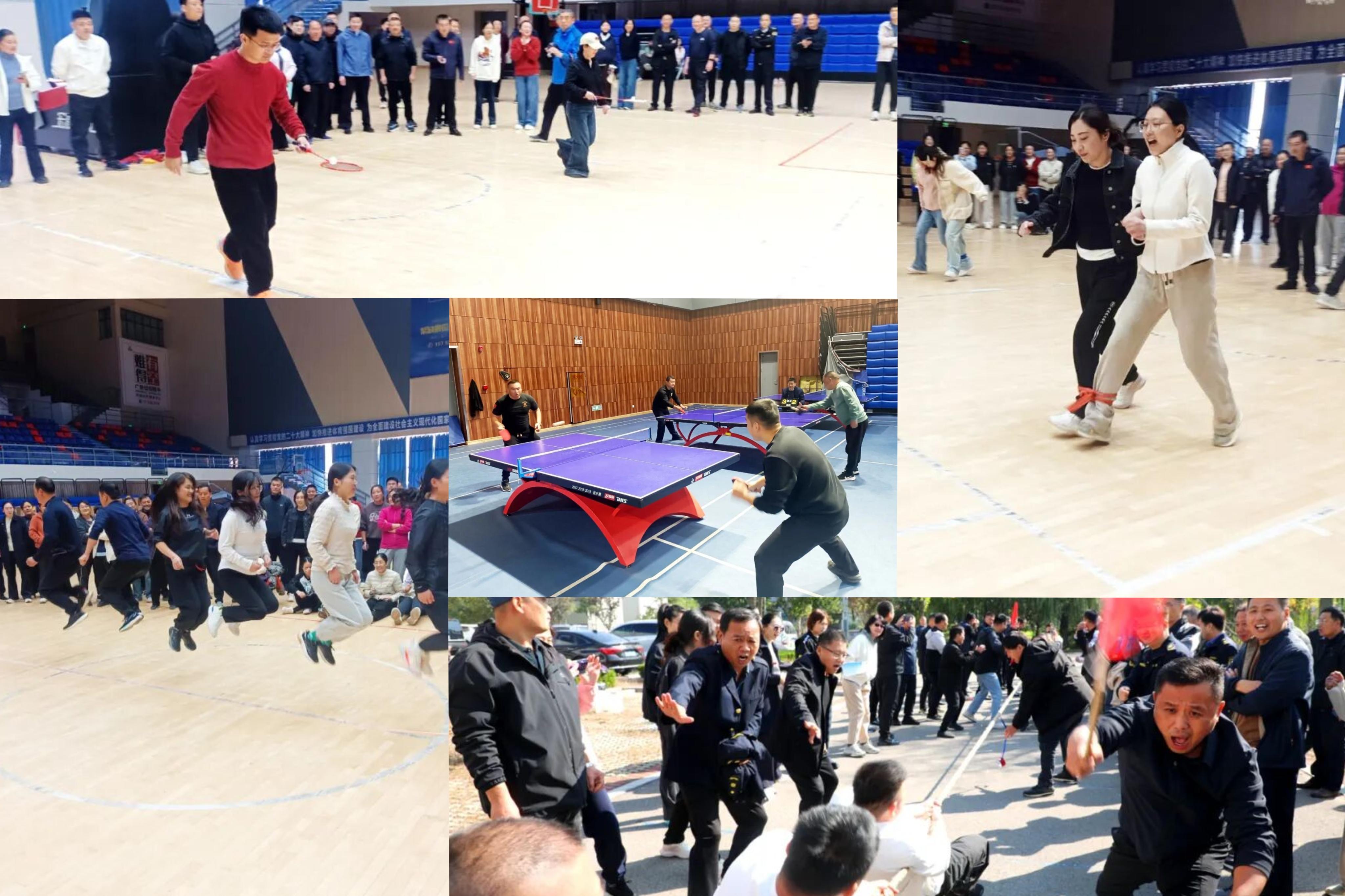 本次趣味运动会项目丰富,设置了集体跳绳、集体拔河、趣味保龄球、乒乓球、抢凳子、定点投篮、两人三足绑腿跑、托球跑等等趣味比赛项目。在集体跳绳比赛现场,参加比赛的4支队伍每8人一队,2人摇绳6人跳绳,在规定的轮数内展开集体跳绳次数竞赛,经过紧张有趣的角逐,来自局机关后勤的参赛队伍齐心协力密切配合获得第一;在紧张激烈的拔河比赛现场,选手们团结协作密切配合,心往一处想、劲往一处使,进行一轮又一轮的紧张对阵,现场的口号声、加油声和欢笑声响成一片,将比赛一次次推向高潮;趣味保龄球、抢凳子、两人三足绑腿跑等比赛活动更是趣味横生,现场变成一片欢乐的海洋……