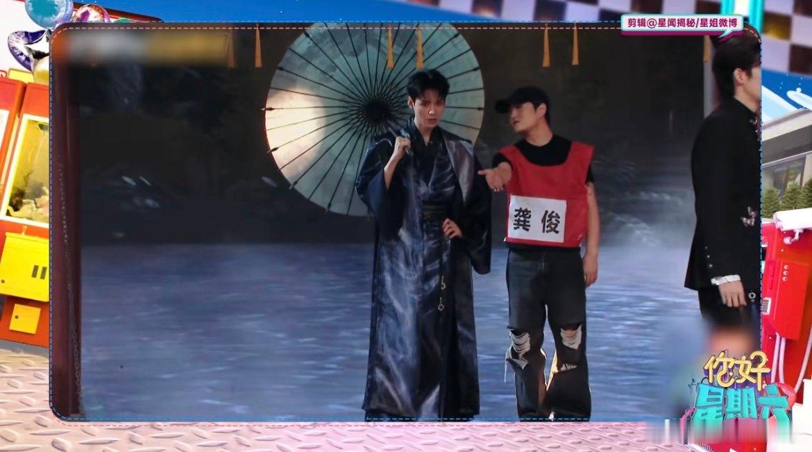 龚俊问何炅他的武器伞帅不帅 答案必须是超帅!花絮中他撑着伞登场的画面,简直是从武侠剧里走出来的,碰了碰杨迪的剑再亮出自家"武器伞",问何老师时眼里全是小得意。你好星期六