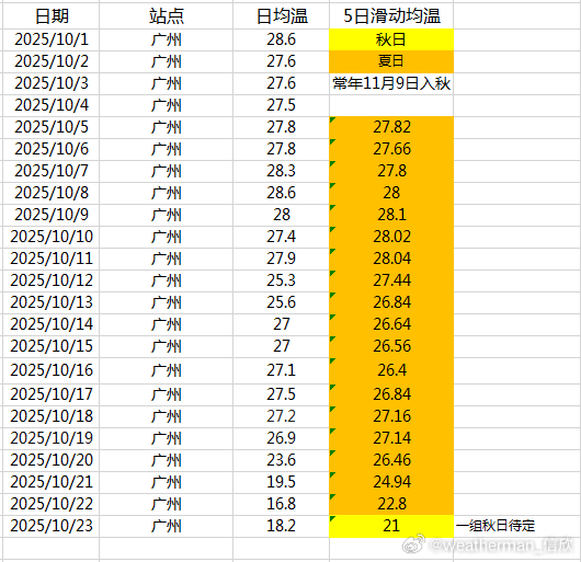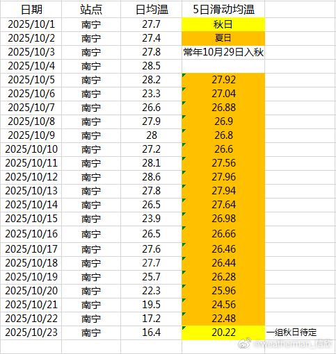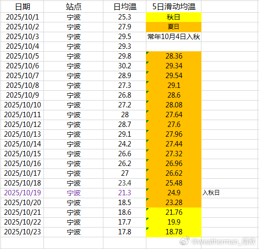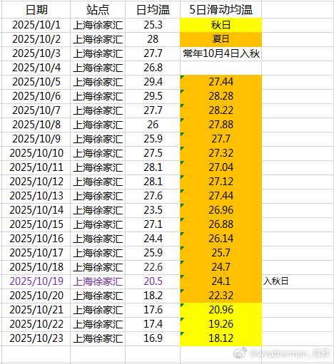 上海、宁波反推10月19日入秋也没悬念。上海为1951年以来第二晚入秋,仅次于2006年10月23日。南宁和广州已经有了一组秋日,福州有了单日秋日。但未来升温,重回夏日,最终能否入秋待定。