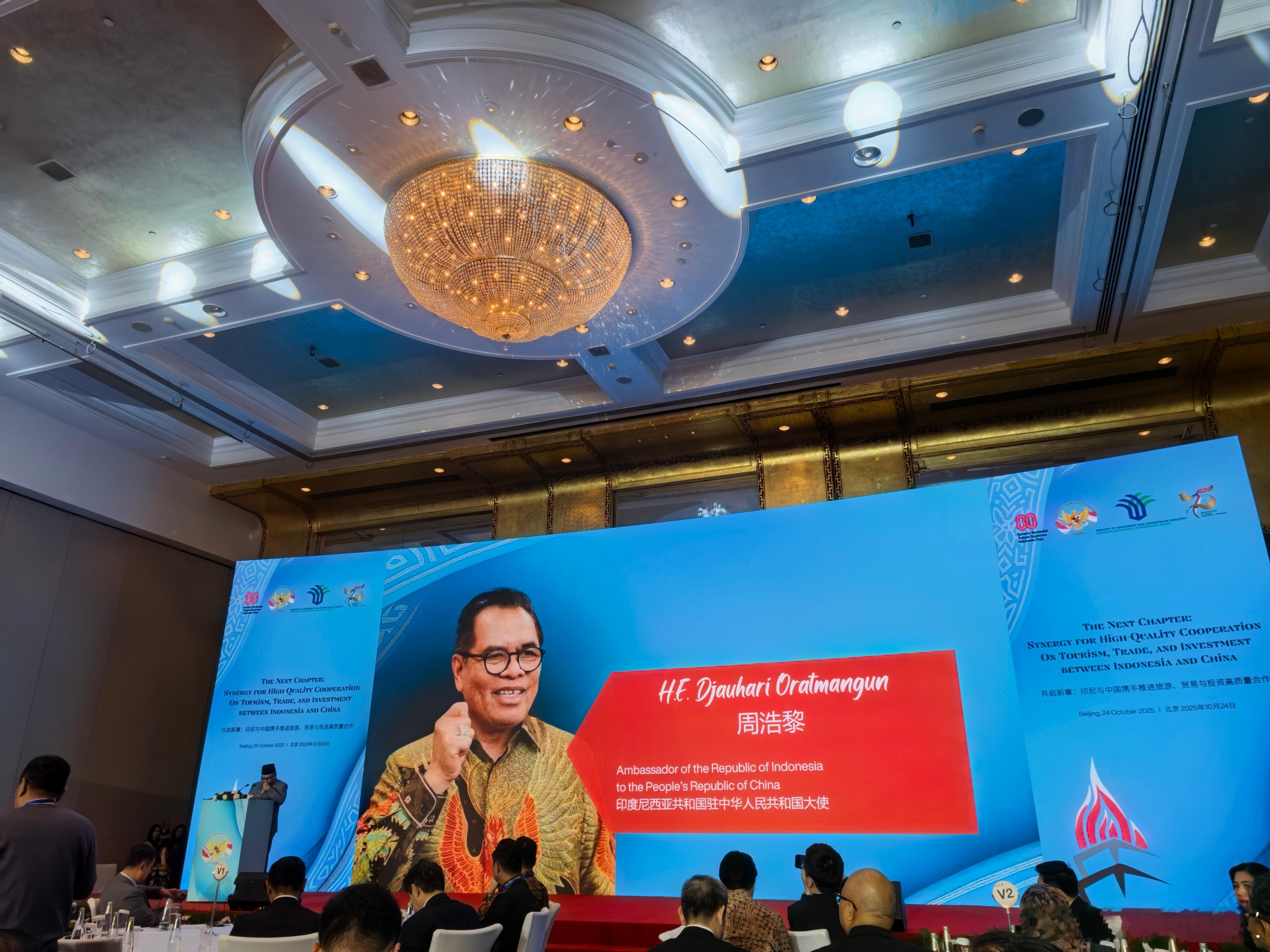 今天受印尼驻中国大使周浩黎(H.E. Djauhari Oratmangun)邀请,参加印尼独立80周年招待会。时隔两月,再次见到周浩黎大使和裴连杰公使(Parulian Silalahi),很高兴也倍感亲切。