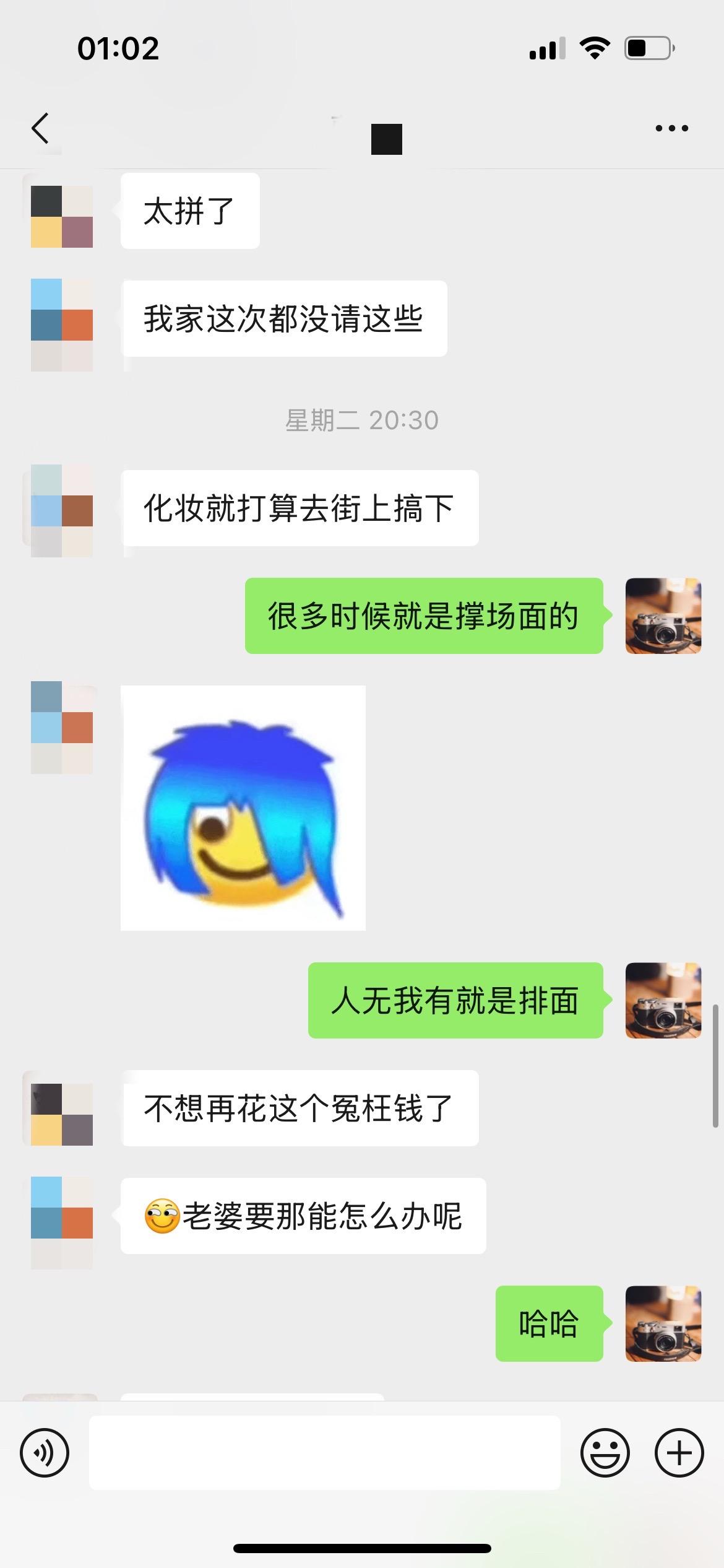 跟他聊的时候我俩都挺感慨的,现在结个婚成本太高了!婚礼摄影摄像、化妆师、礼服租赁、婚车车队、宴席布置,再加上司仪和仪式环节,要是搞个草坪婚礼之类的,没个十几二十万根本打不住。本来结婚是件很幸福的事情,最后却变成了沉重的经济负担,有点本末倒置了