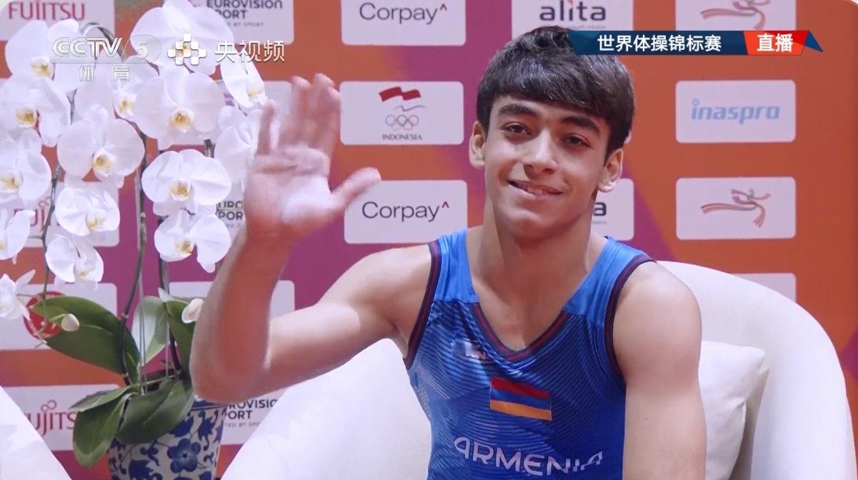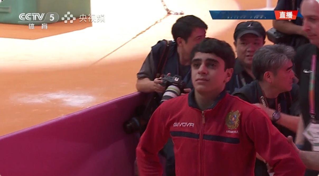 男子鞍马金牌——洪延明 今年19岁哈恰克梁和洪延明同得14.600分但是我们E分