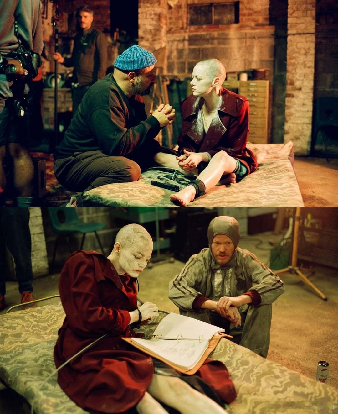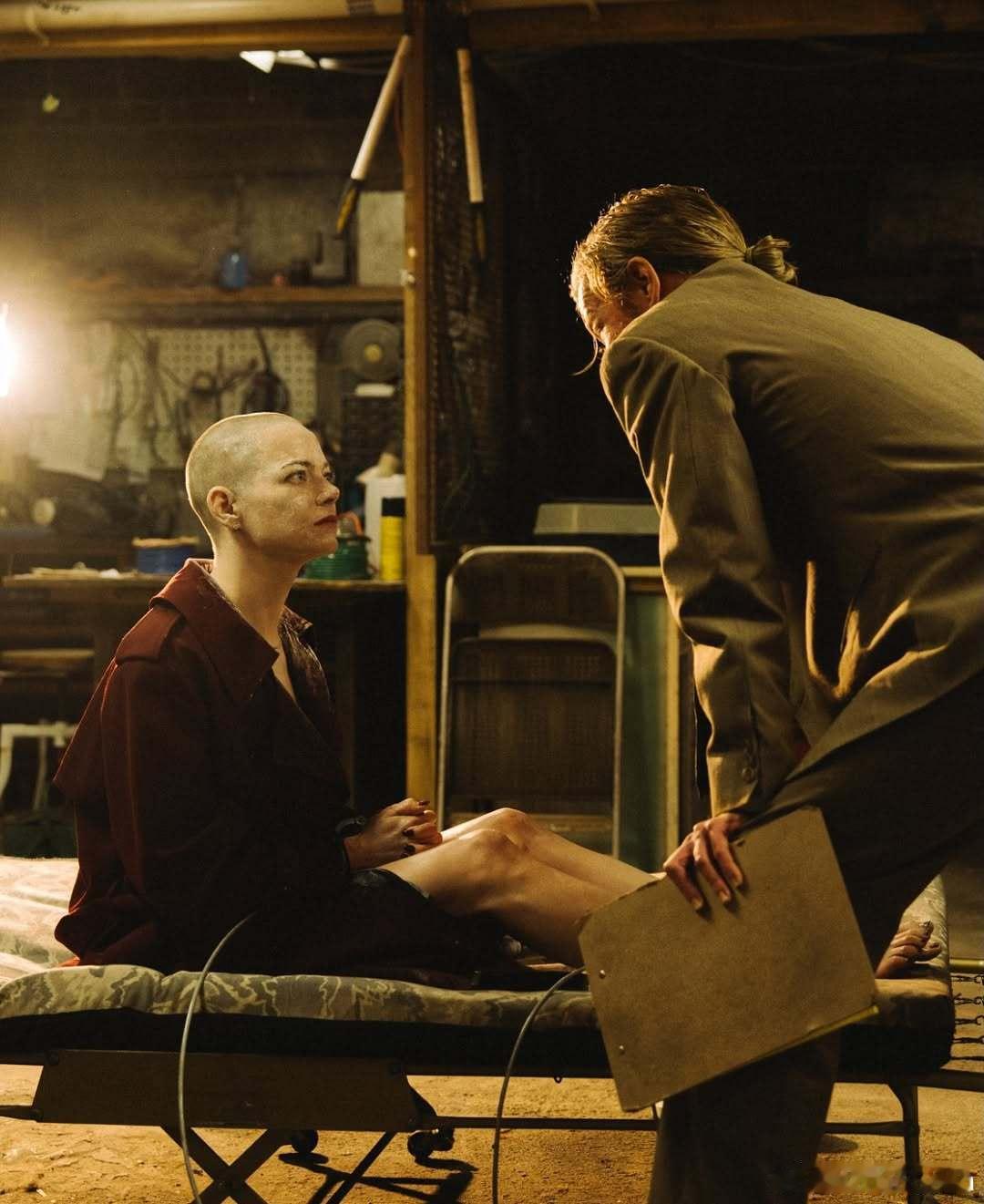 Emma stone艾玛斯通在新片《拯救地球》的片场幕后照,石头透露剃光头时担心变化太大吓到闺女,还特地提前给她做了心理准备,哄闺女说头发总会长出来,所以想做什么发型都可以,于是女儿Louise Jean面对光头的妈妈完全OK