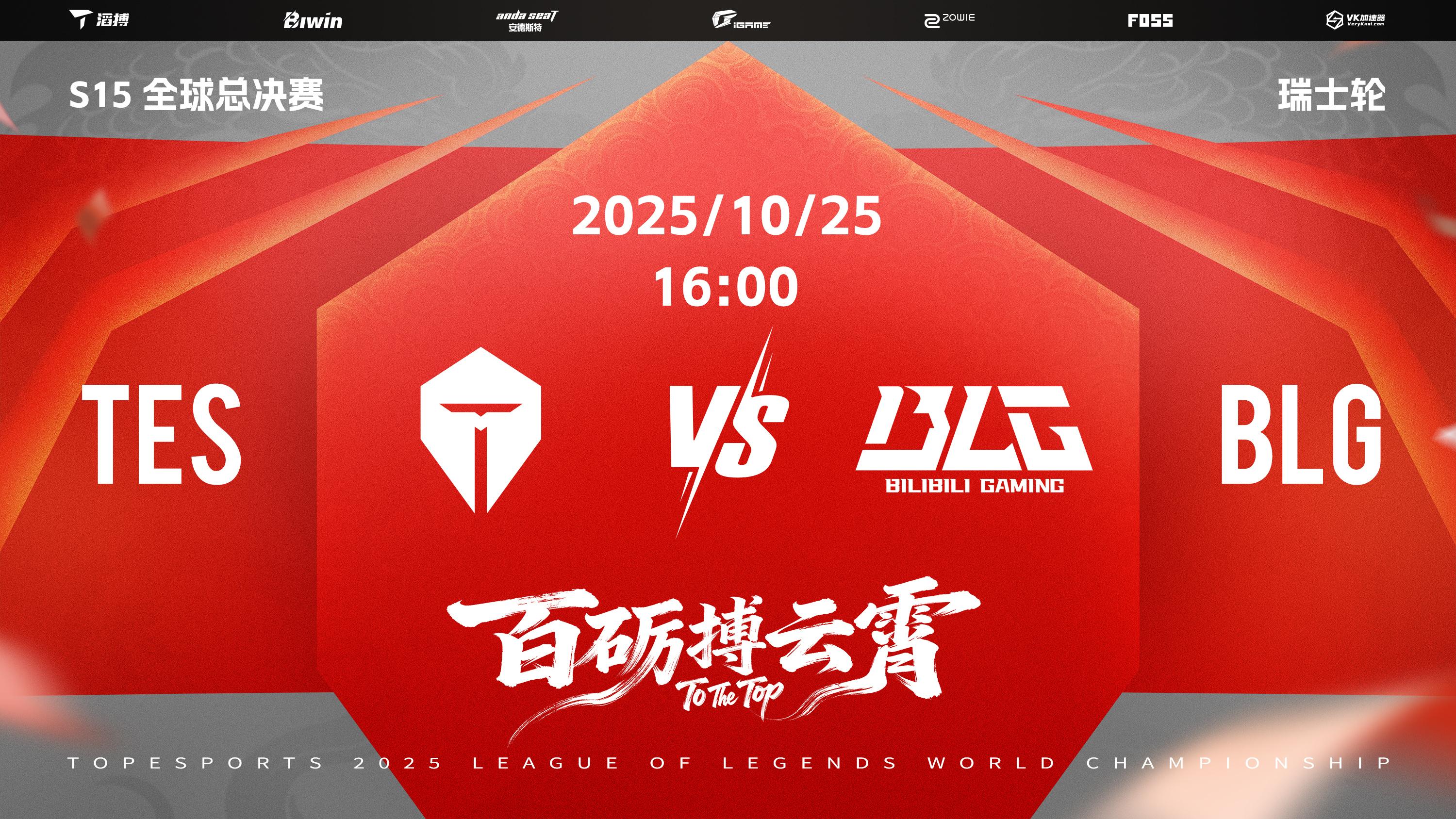 虎扑10月24日讯明日2025全球总决赛瑞士轮2-2组即将对战BLG,TES发布赛前预告:百砺搏云霄,滔搏加油!