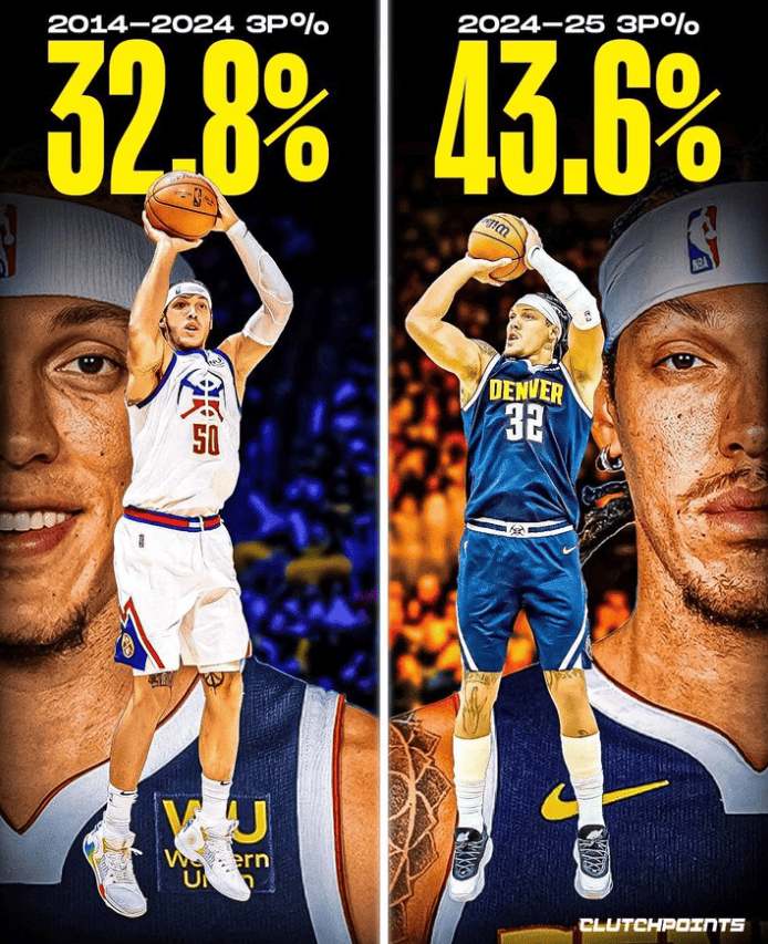 但是到了2024-2025赛季,一切都变了。在尼古拉-约基奇身边打球,戈登找到了节奏,空间和信心,三分命中率高达43.6%,而且出手量相当可观。即便如此,外界仍然质疑那只是昙花一现。如今质疑声可以彻底消失了,在赛季揭幕战对阵勇士的比赛中,戈登完全“起飞”,三分球11投10中,砍下50分,同时仅有6次罚球。