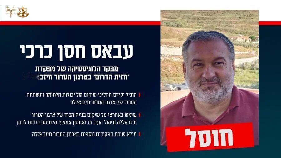 妄图重建真主党,真主党后勤头目被定点清除 以色列国防军宣布,昨天早些时候,黎巴嫩南部真主党后勤部队负责人在以色列无人机袭击中丧生。 据以色列军方称,阿巴斯·哈桑·卡尔基是该恐怖组织“南方阵线”的后勤头目,他近年来在真主党担任高级职务。 以色列国防军表示,卡尔基领导了重建真主党在黎巴嫩南部的能力的努力,同时修复了去年战斗中被摧毁的基础设施。 以色列军方表示,卡尔基还负责“重建该组织的部队结构,并管理黎巴嫩南部的武器转移和储存”。 昨天早些时候,卡尔基在黎巴嫩南部纳巴泰附近的图勒镇驾车时遭到袭击。