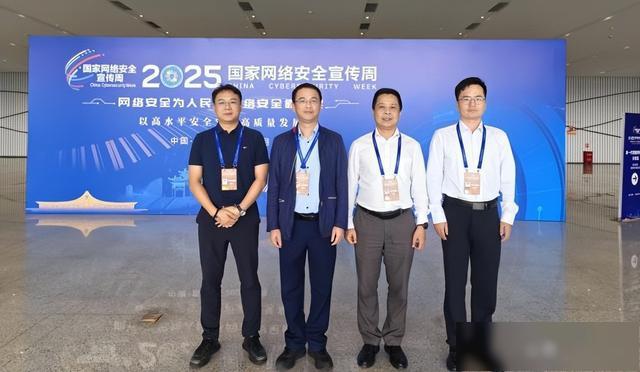 ▲2025年9月,市委宣传部副部长、市委网信办主任李孟开(左二),市委网信办副主任李尔(右二),中山网总经理、中山市网络空间安全协会会长王嘉飞(左一)受邀参加国家网络安全宣传周系列活动