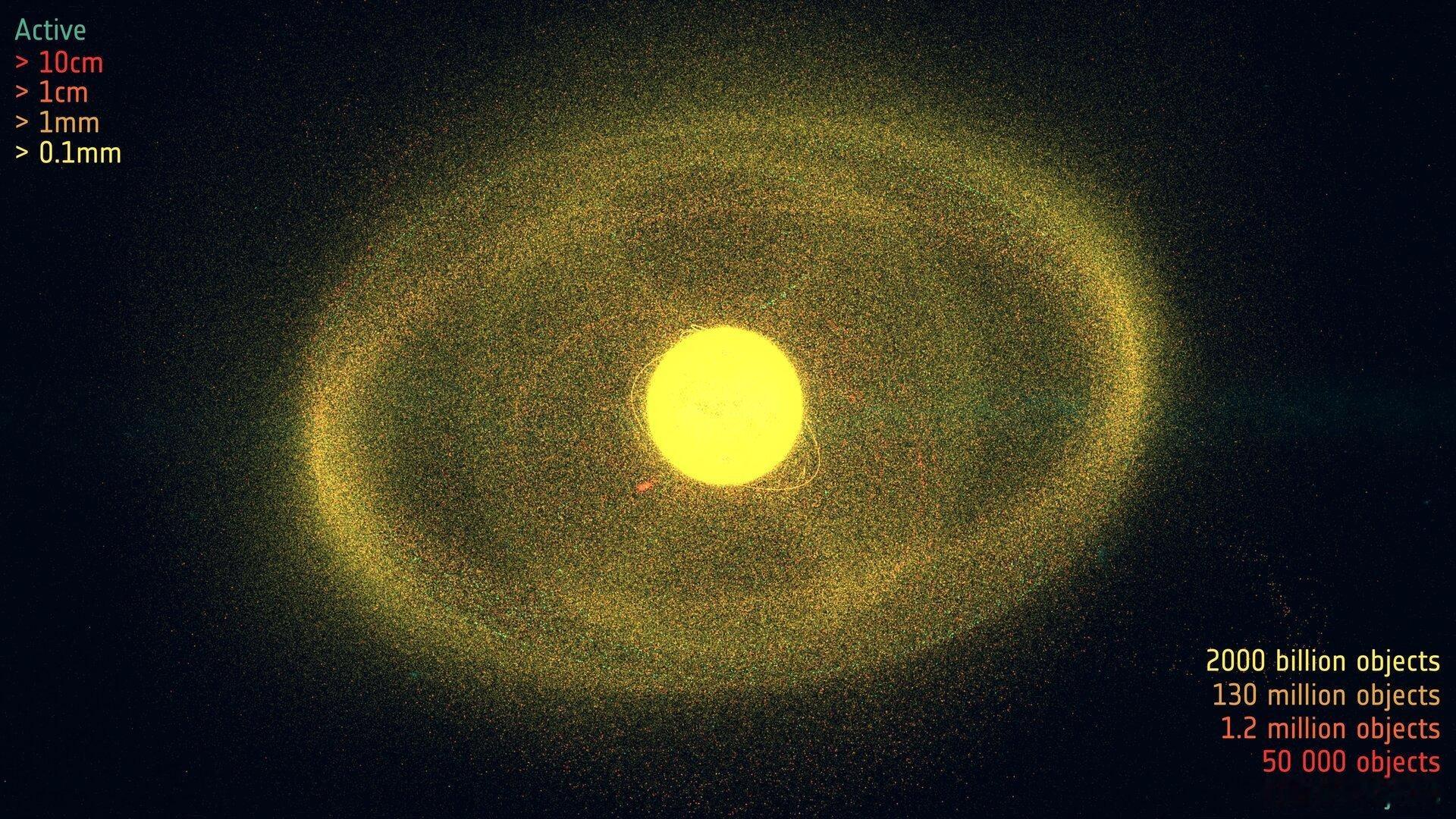 欧空局制作的地球🌏轨道上的空间碎片分布模型图