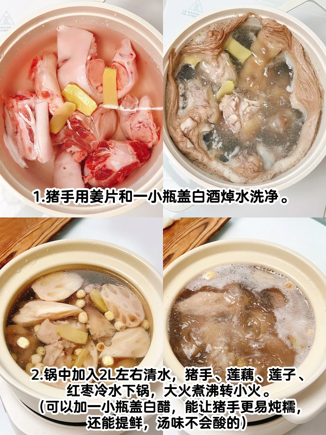 [二R]锅中加入2L左右清水,猪手、莲藕、莲子、