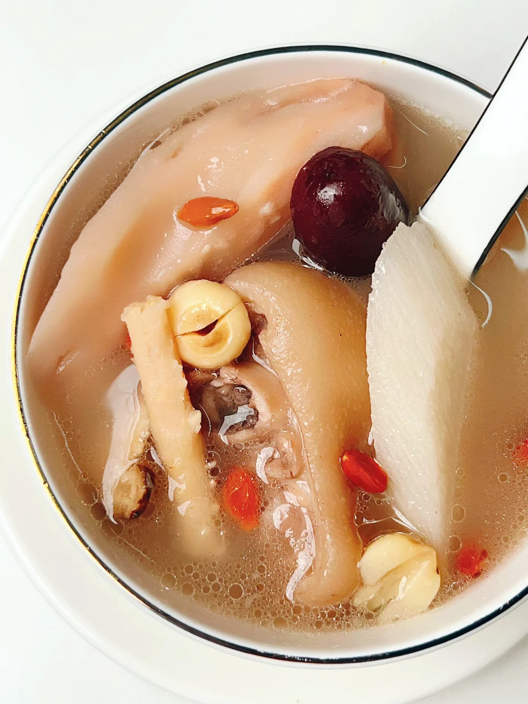 蹄花搭上沙参和当归炖汤,蹄花软糯汤味香浓😋,