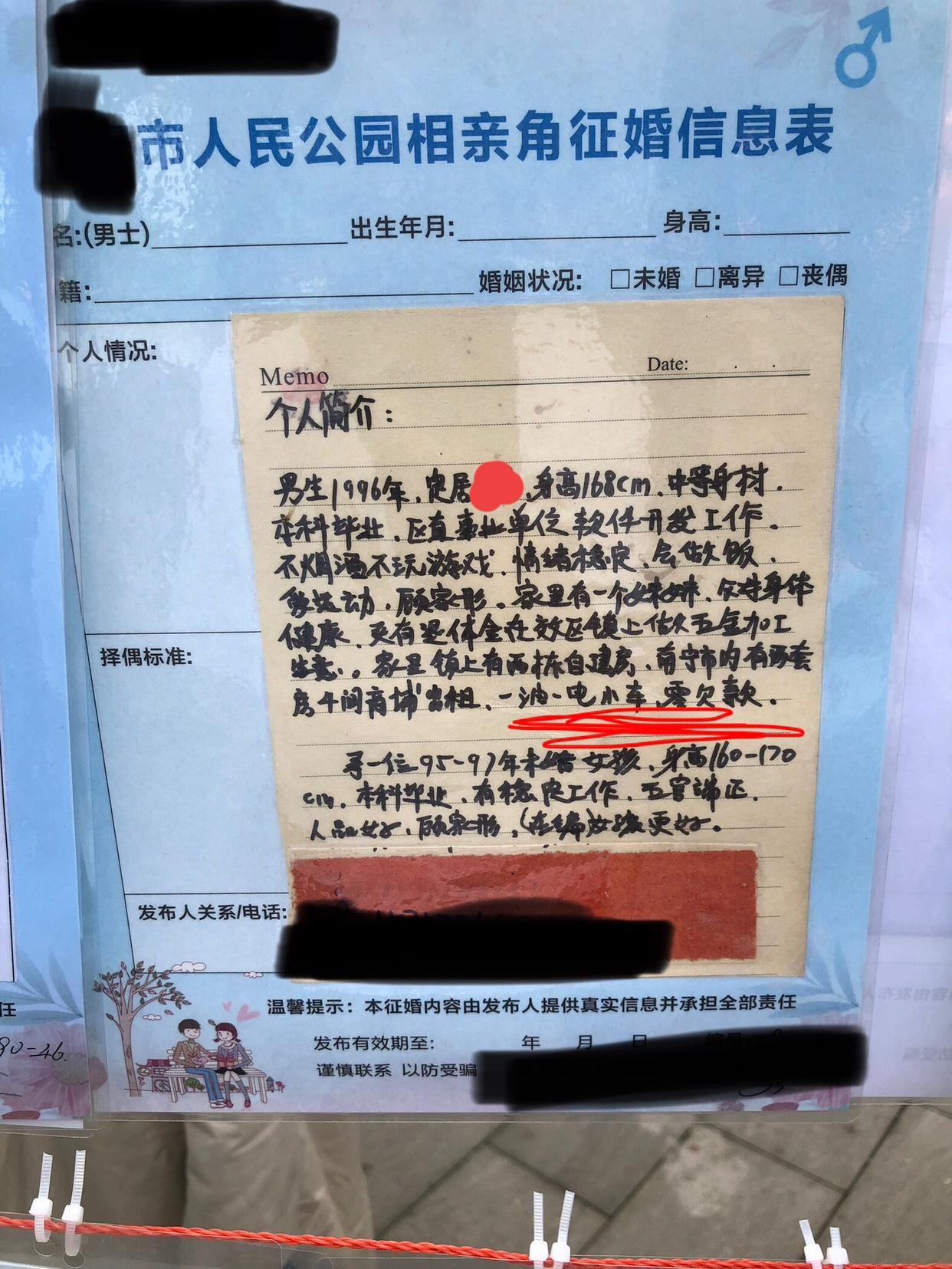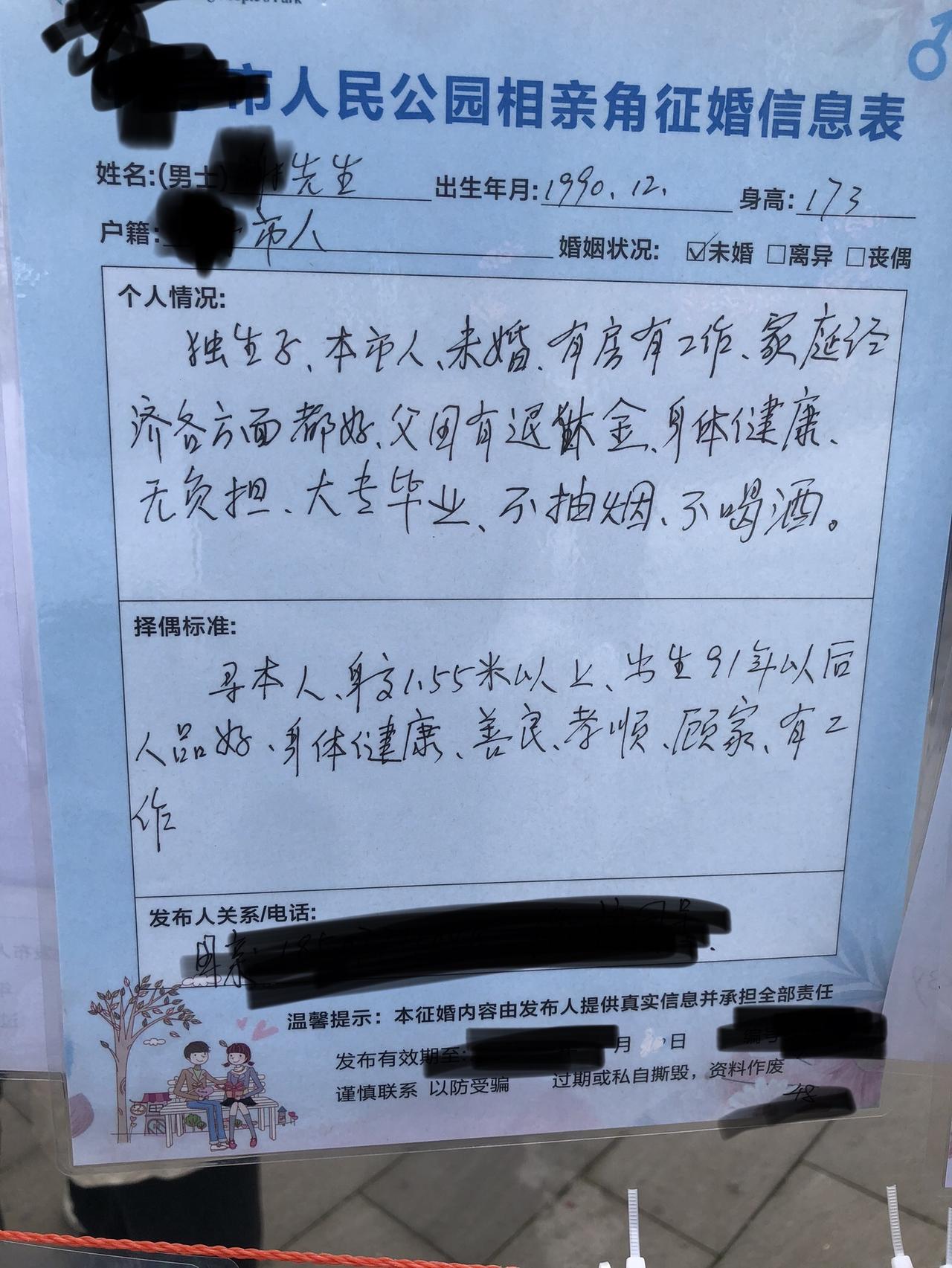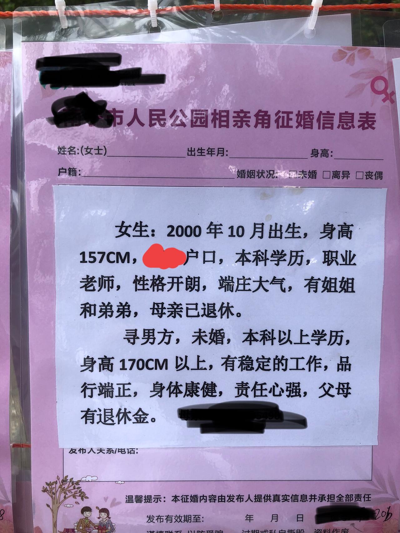 路过真实相亲角好热闹 随机拍了四位帅哥美女 第一位女士:本科学历、财务工作稳定且父母有退休金无负担。 第二位女士:教师职业稳定,有寒暑假,带娃应该很好的,性格开朗端庄且本科学历户籍。 第一位男士:居然没有负债!!有单位,有4个商铺,有自建楼又有车!经济实力雄厚且生活习惯健康顾家。 第二位男士:父母有退休金,家庭经济条件优越无负担、不抽烟喝酒,这个也挺好! 看起来条件都挺好的 他们应该很受欢迎吧 既然大家条件都这么好 我觉得就地匹配就好了啊 为什么他们就想不到这个主意呢[泪奔][泪奔][泪奔]