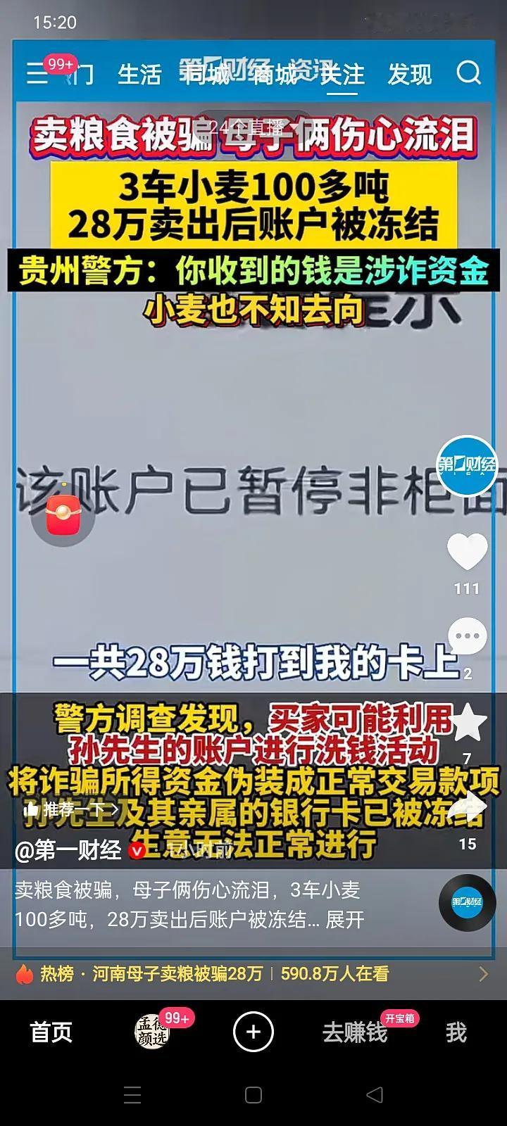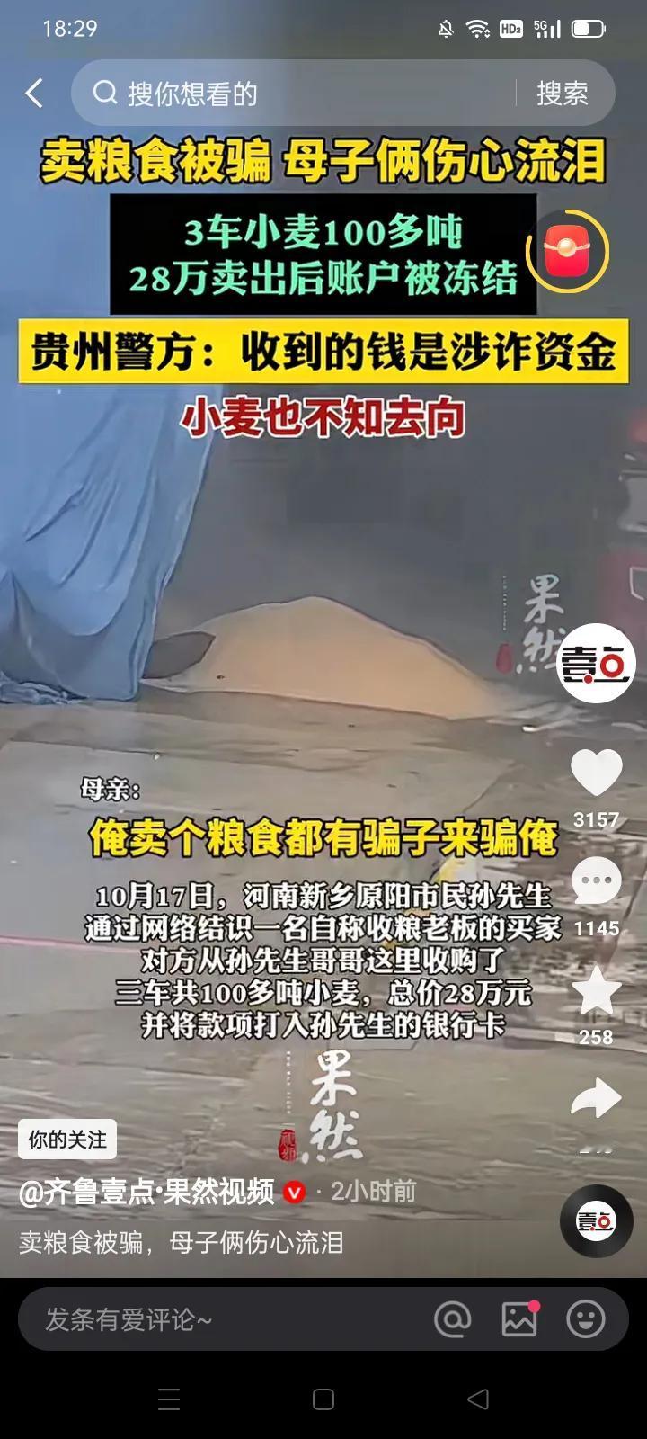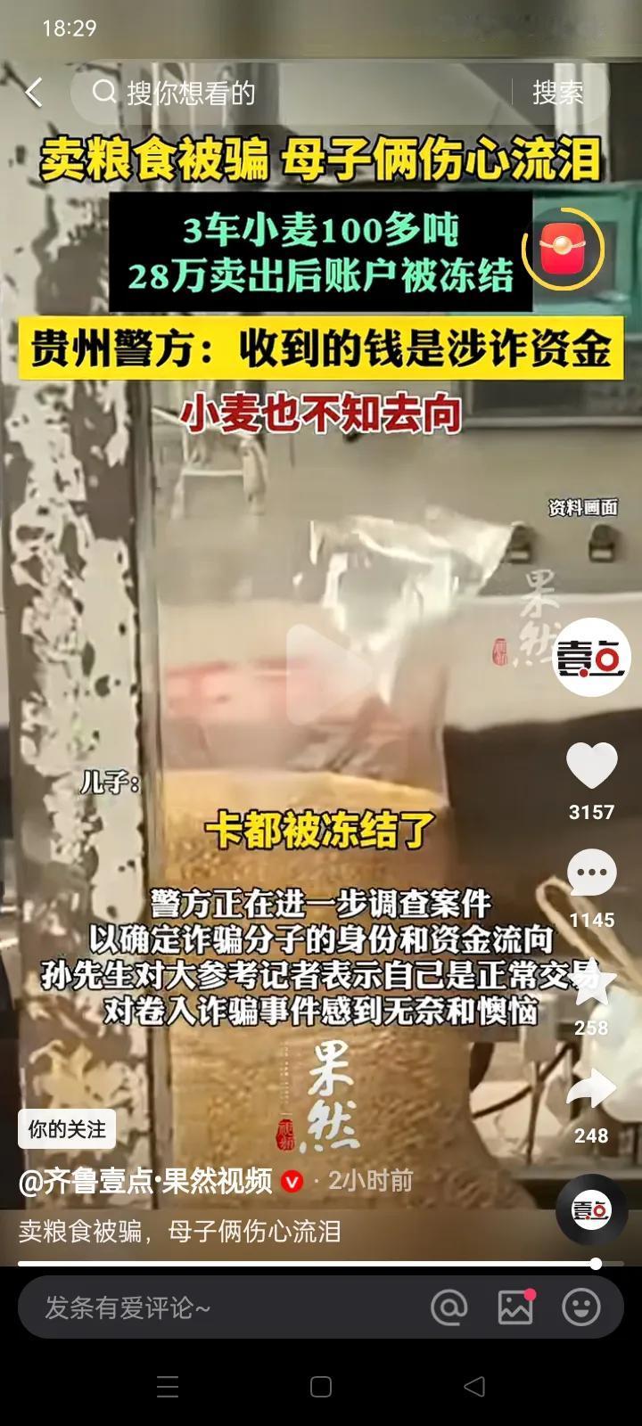 飞来横祸!河南农民28万卖粮款被贵州警方以‘’涉嫌诈骗洗钱‘’冻结?! *近日,