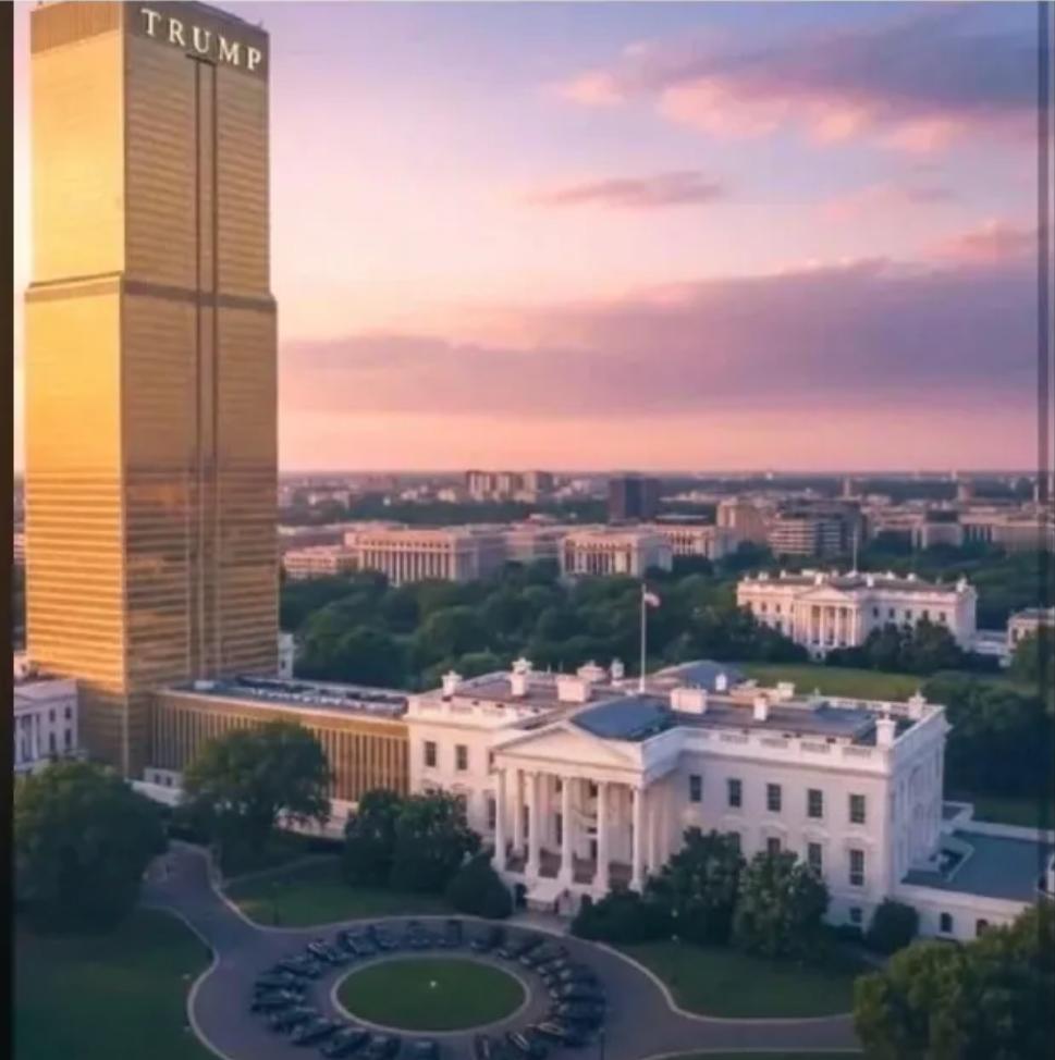 很多人说,特朗普把白宫东翼全拆了盖那宴会厅(左图),会不会让白宫的布局有点头重脚轻啊?可能大家不知道,另一幢特朗普大厦(右图)在等着呢!当然,这特朗普大厦也还只是一个效果图,能否变为实物就要看特朗普的了。白宫东翼有豪华宴会厅,西翼如果再来个特朗普大厦,这场景是不是就格外带劲了?