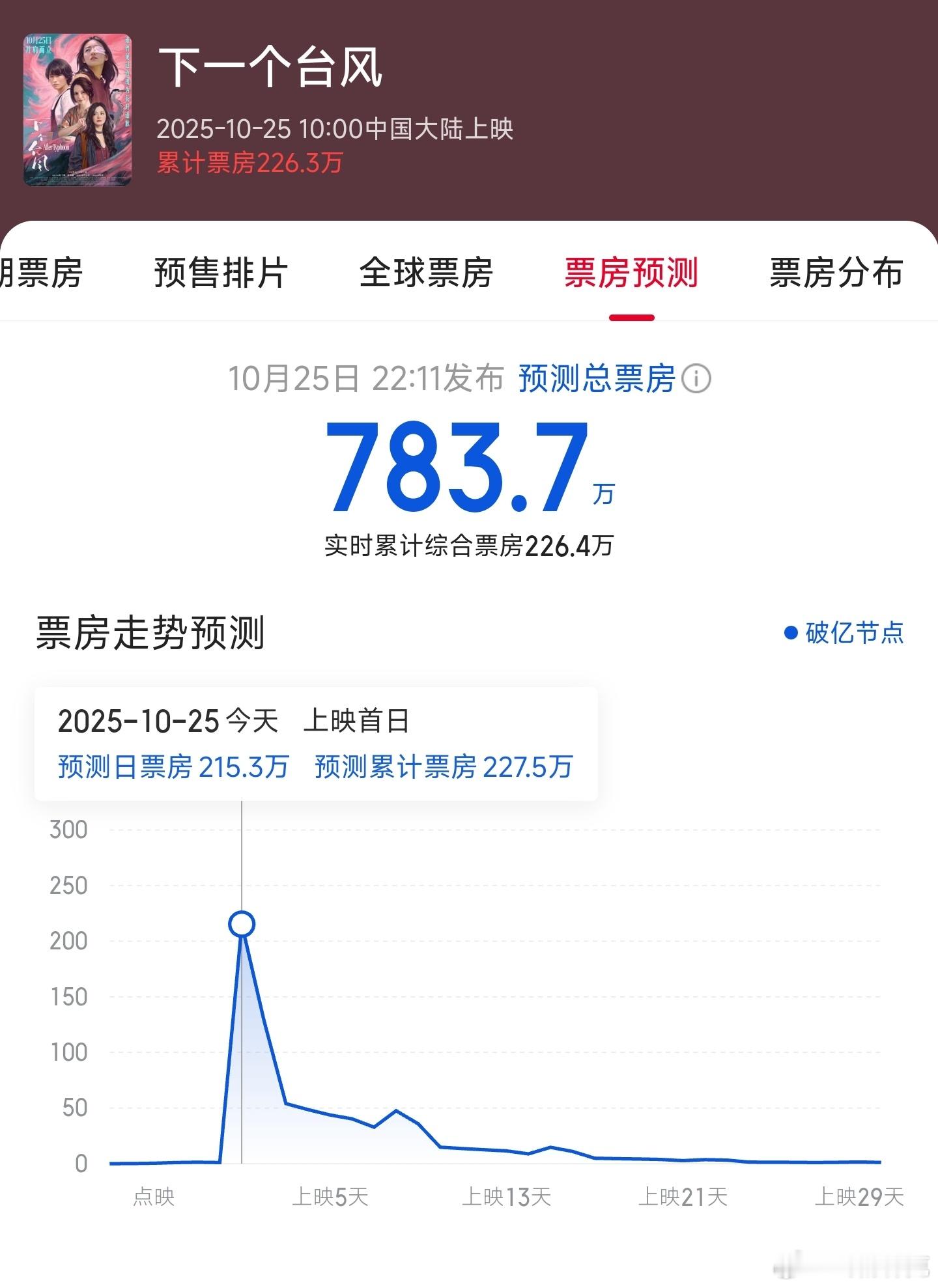 张子枫新电影《下一个台风》倒挂11个点以上,太惨了。猫眼预测总票房783.7万[