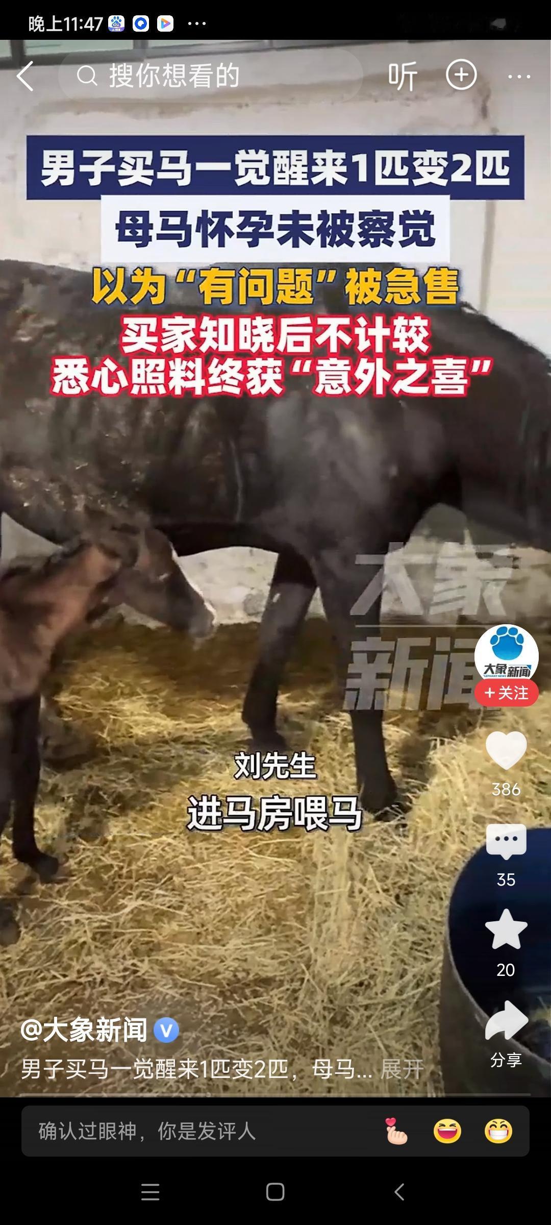 奇获 昨购良驹系厩前, 晨来惊喜见双骈。 莫非天眷诚心事, 一马成双意自绵。